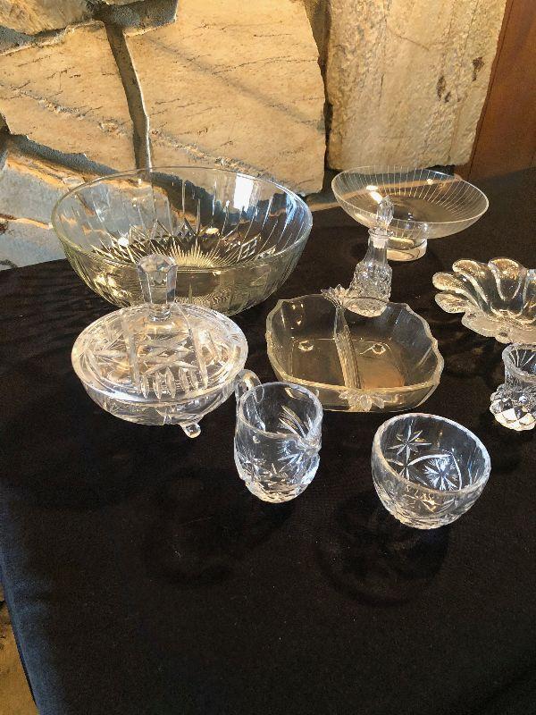Used. Good Condition. Nice for any meal. Cut Crystal included
