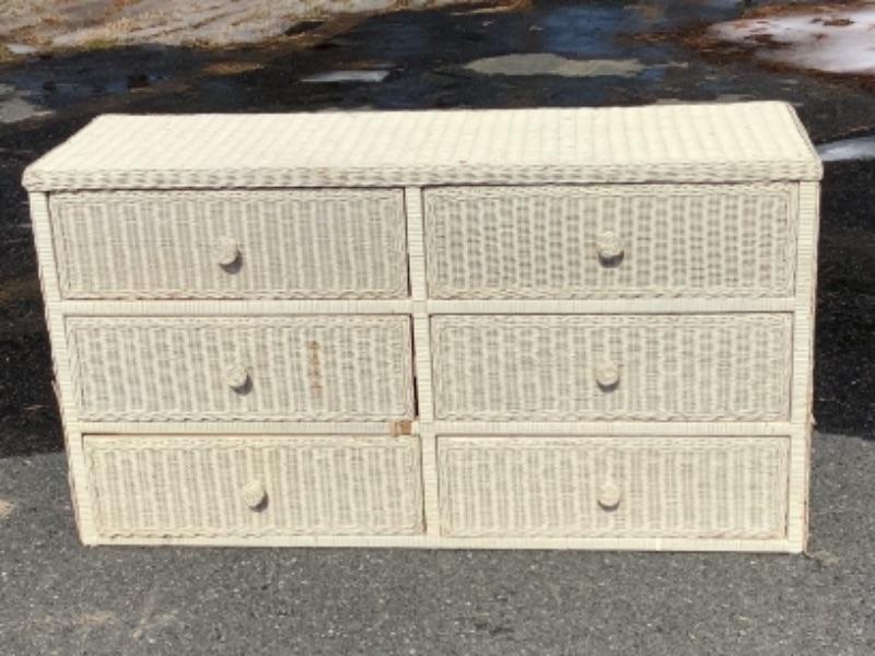 White Wicker Six Drawer Dresser