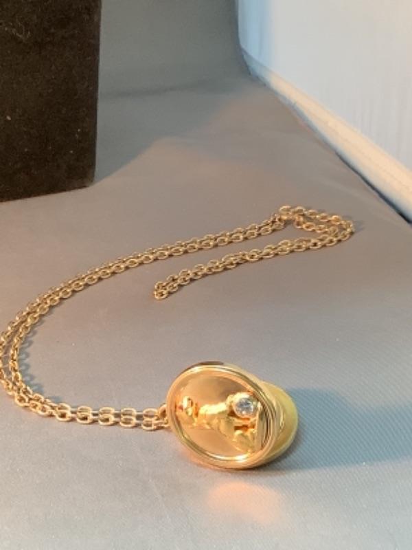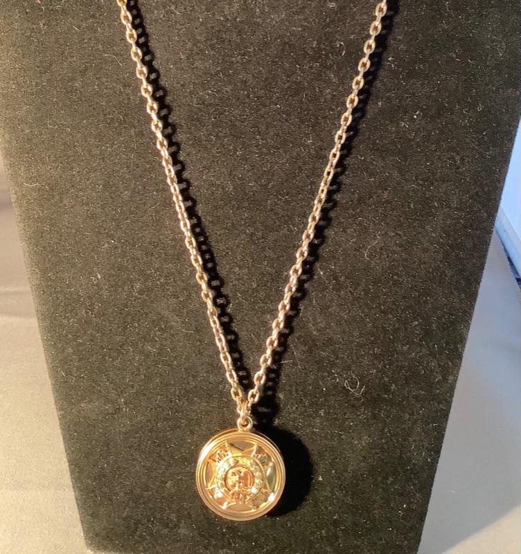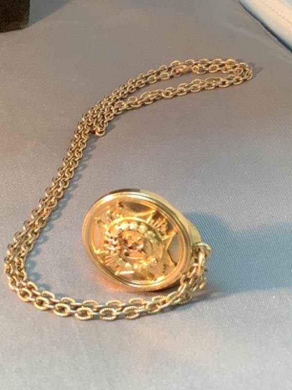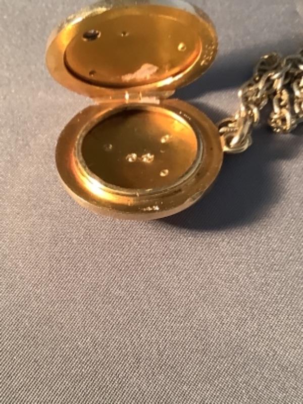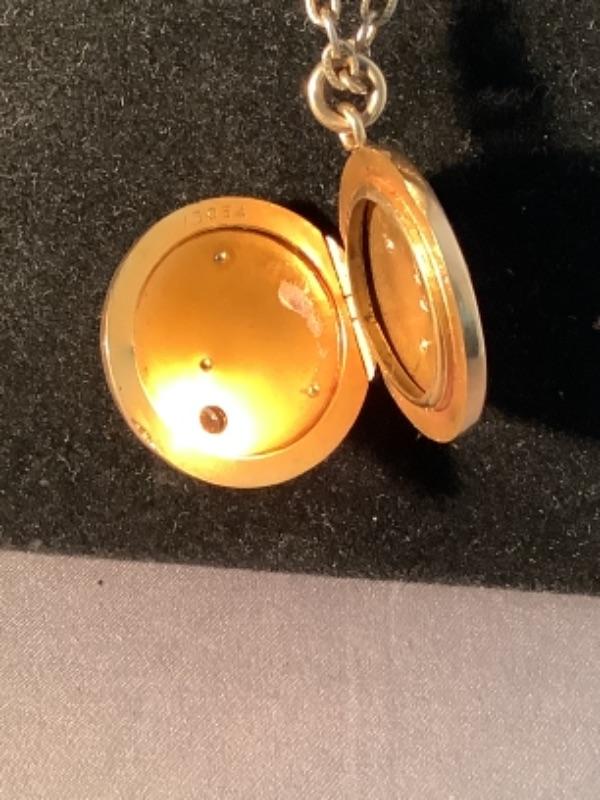 Vintage 14 karat yellow and rose gold Police Officers Guild 30 Year Locket, chain is gold tone, has a diamond and a ruby accent, weighs 21.3 grams