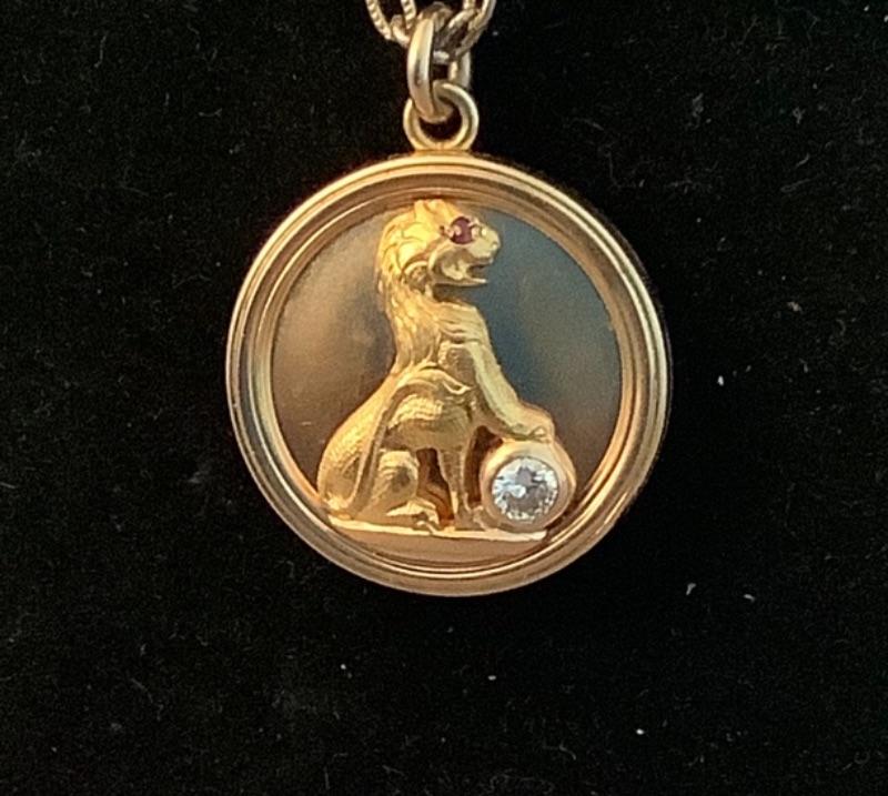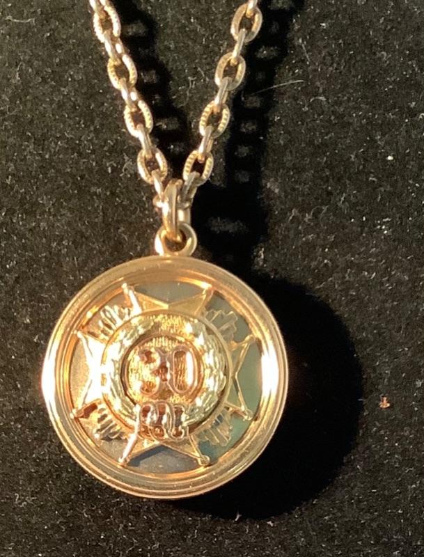 2509 Vintage 14 karat Gold Police Officers Guild 30 Years Locket with Diamond and Ruby Accents
