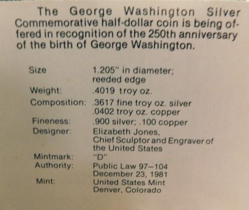 250th Anniversary George Washington Birth Half-Dollar 90% Silver UNC. 1982D Sealed. Plastic sealed in display card
