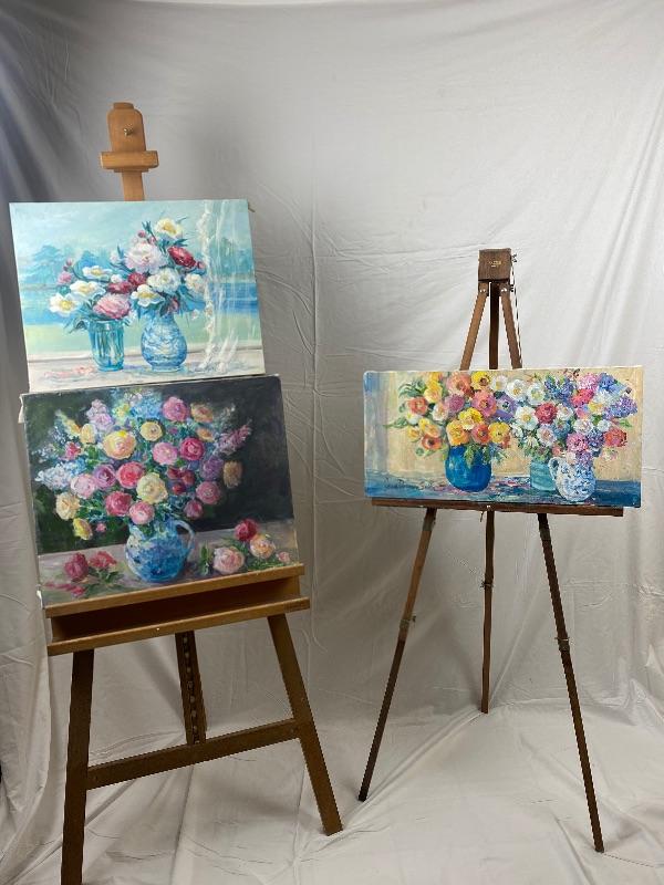251 Lot of 3 Original Floral Oil Painting by Jean Ranney Smith