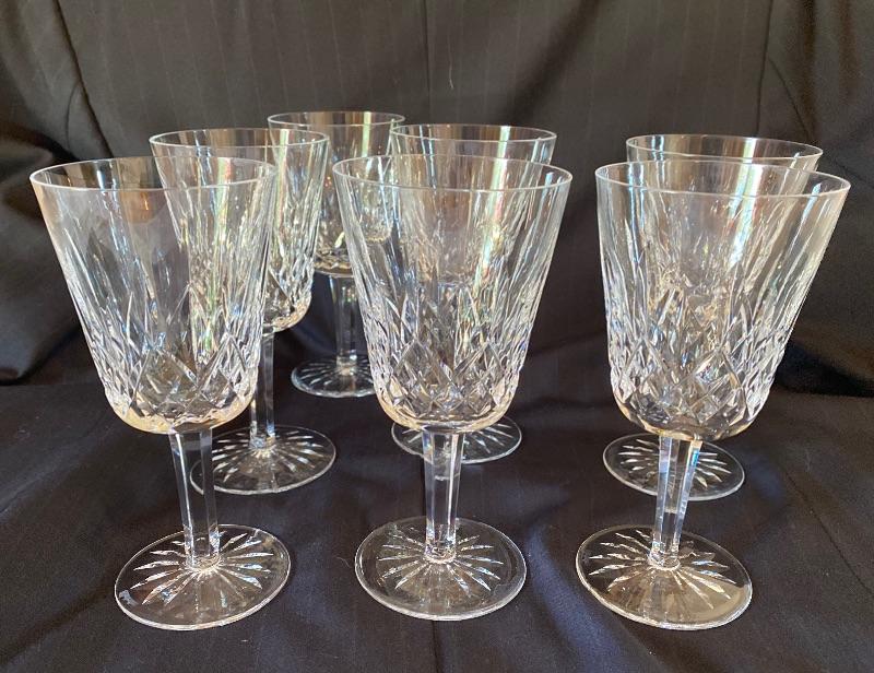 Set of 7 Waterford Lismore Wine goblets measuring 7 inches tall by 3 1/2 inches round all in excellent condition no flaws