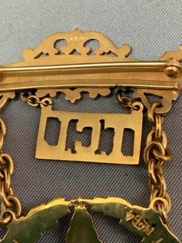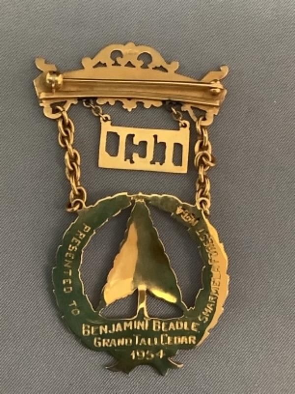 14 karat yellow gold Tall Cedars of Lebanon Sharmela Forest No.64 Masonic pin, weighs 16.3 grams