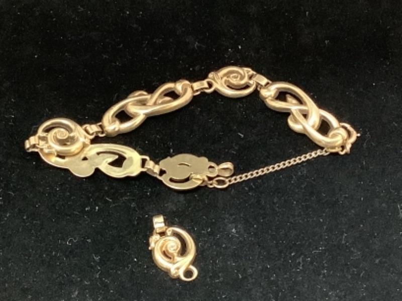10 karat yellow gold bracelet with extra link, weighs 9.6 grams