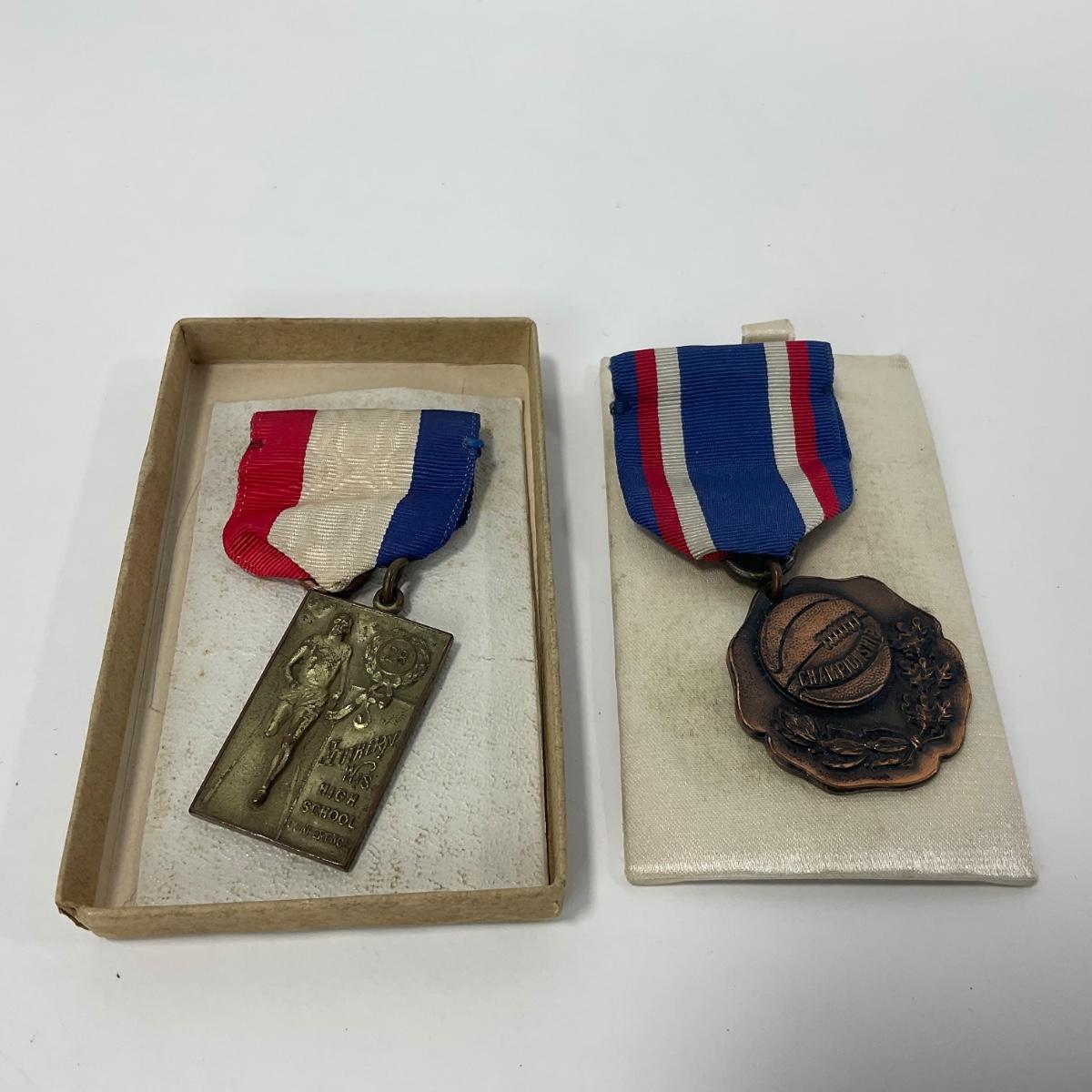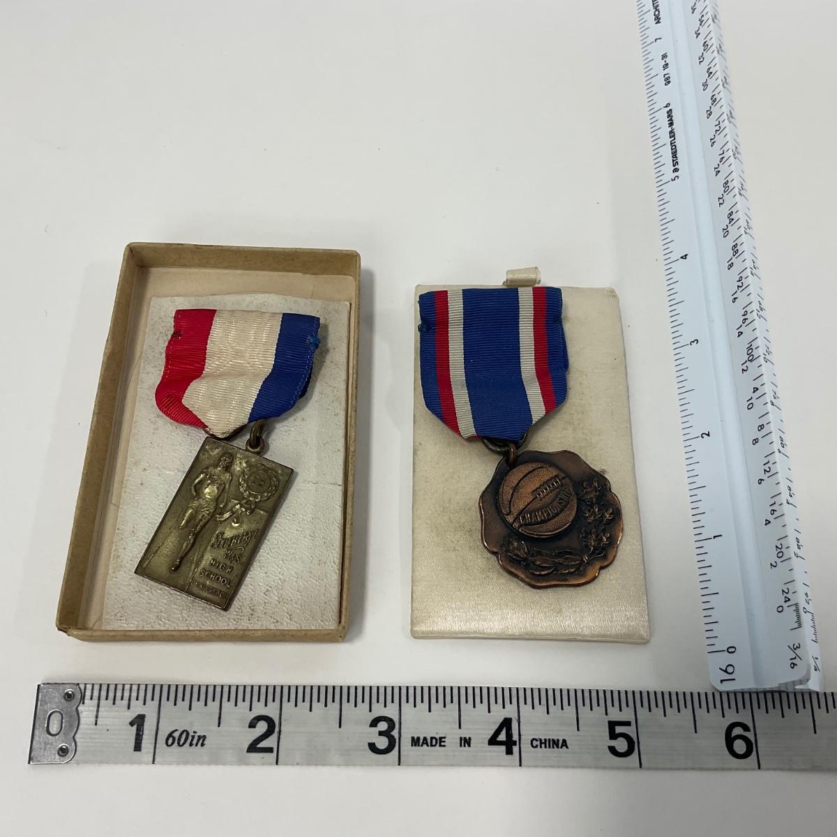 Two vintage 1920’s sports metals for basketball and track. One is broken. Please see photos for details and condition. ::: Shipping is available on this lot. If you require shipping you must let us know at the close of the auction. We will coordinate with you after the item has been won. Shipping fees will include insurance up to or exceeding the value of all items being mailed. If you have any questions regarding this lot please contact the auctioneer either via this website, by direct email or by phone. PICK UP TIMES and other important information can be found in the TERMS and DESCRIPTION of the auction. Please take a look for pertinent information. Thanks!