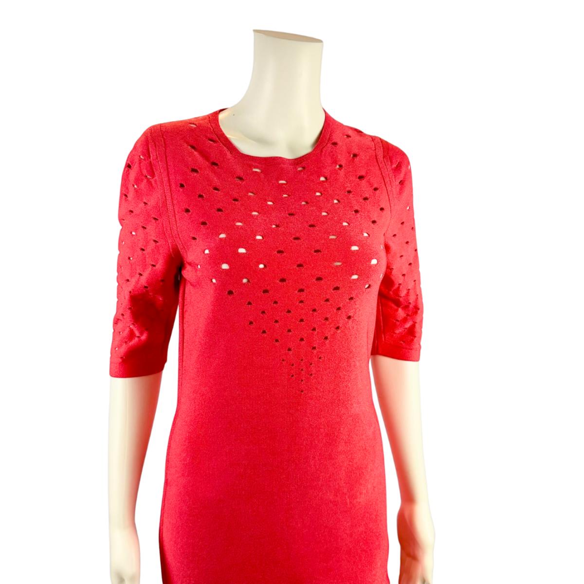 252. New with Tags CUSHNIE ET OCHS Perforated Guava Red Knit Dress