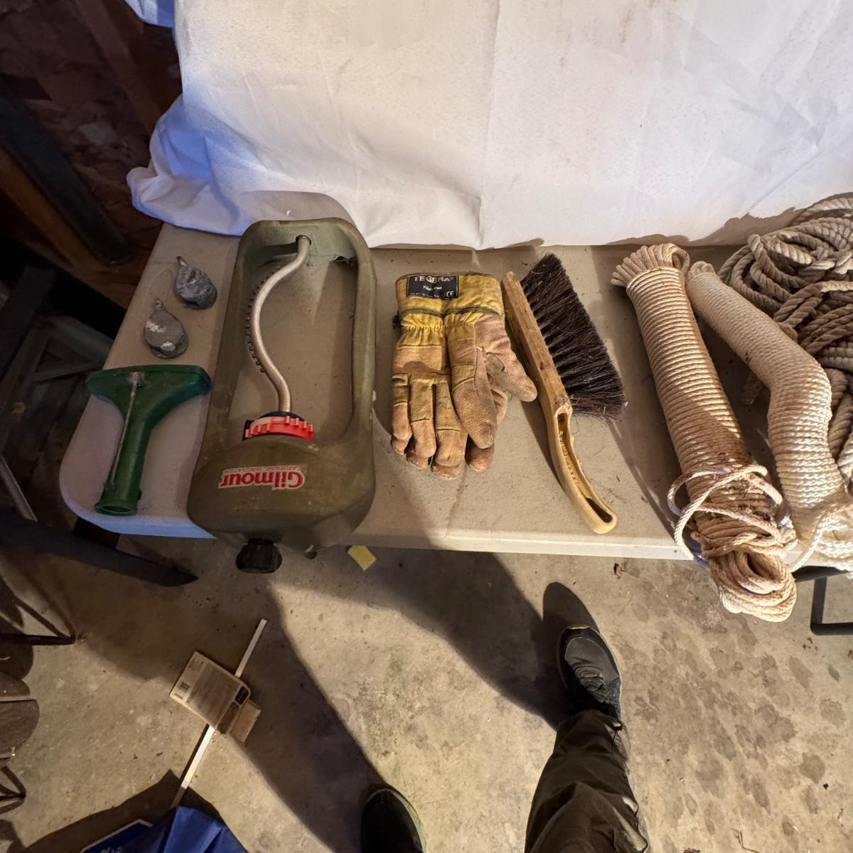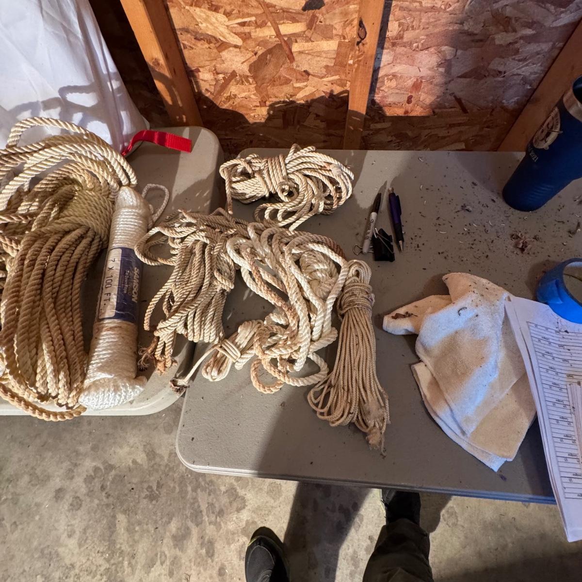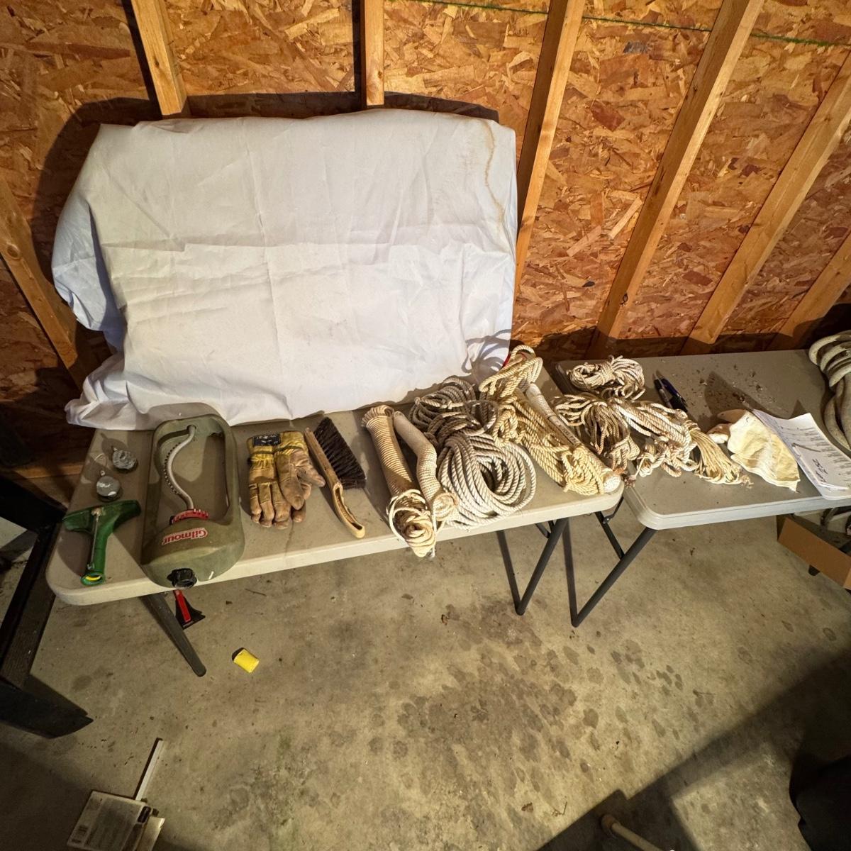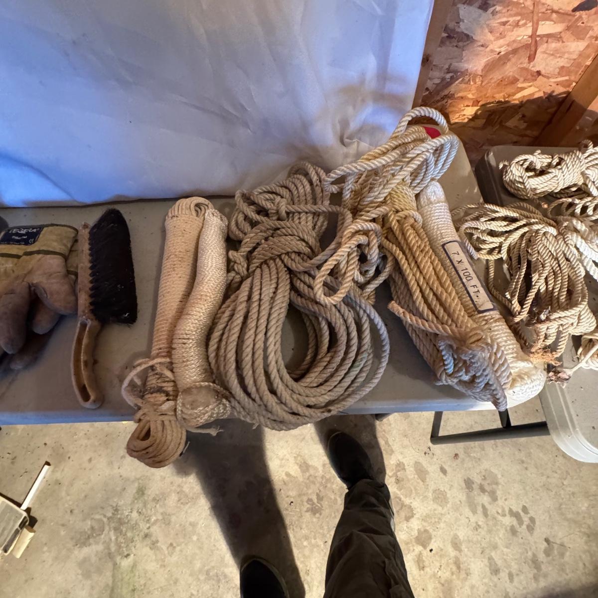 LOT of Misc. Ropes. All ropes are in good shape, some better than others. Garden gloves, lawn sprinkler, etc also included. Please see pics for details.