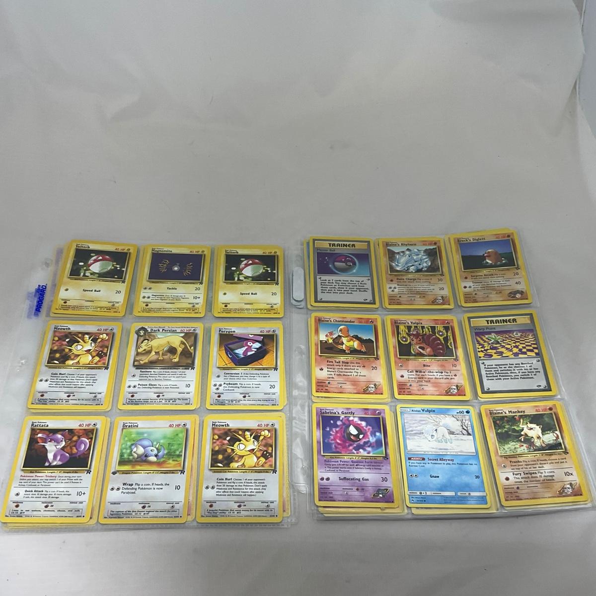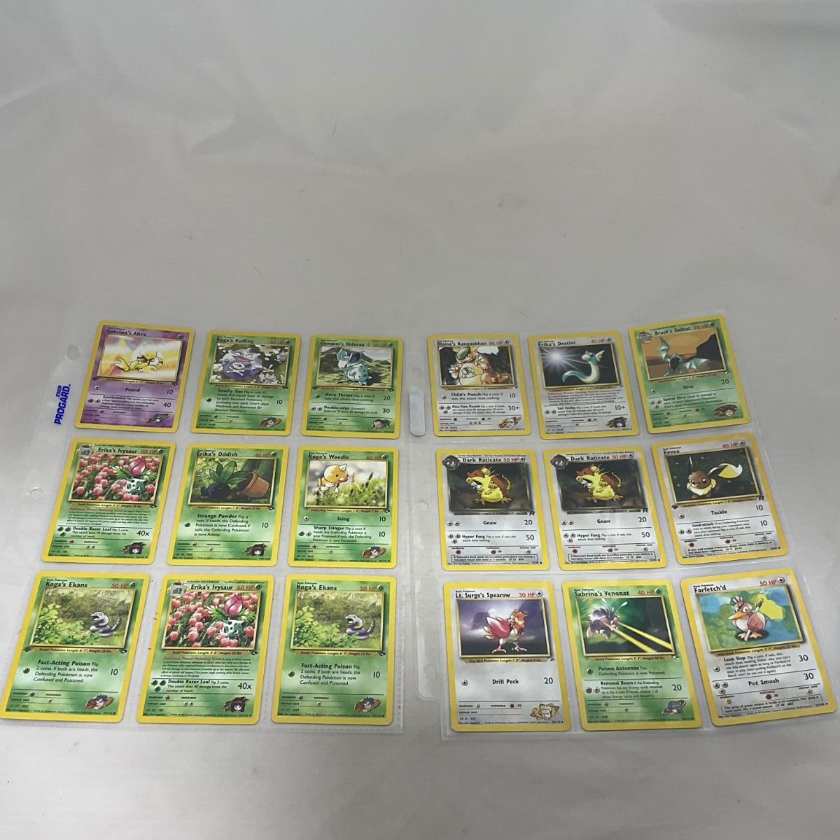 14 sheets of Vintage Pokemon Card Collection. Comes with a binder for transportation. Please see photos for details and condition. ::: Shipping is available on this lot. If you require shipping you must let us know at the close of the auction. We will coordinate with you after the item has been won. Shipping fees will include insurance up to or exceeding the value of all items being mailed. If you have any questions regarding this lot please contact the auctioneer either via this website, by direct email or by phone. PICK UP TIMES and other important information can be found in the TERMS and DESCRIPTION of the auction. Please take a look for pertinent information. Thanks!