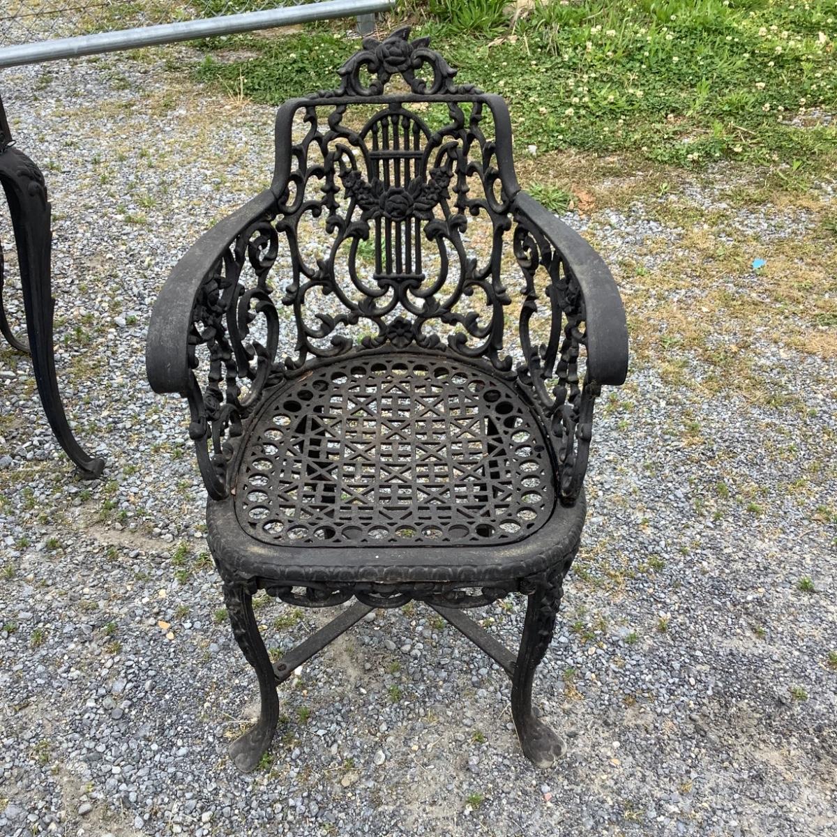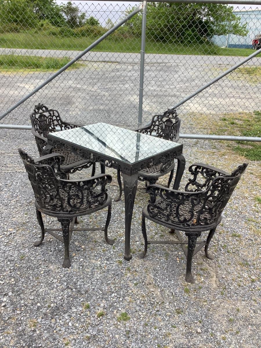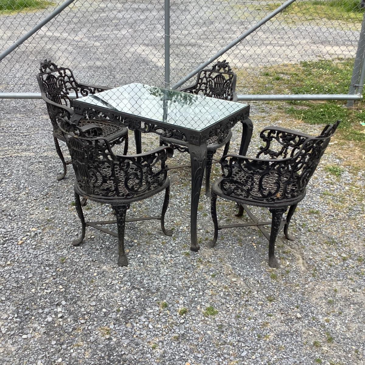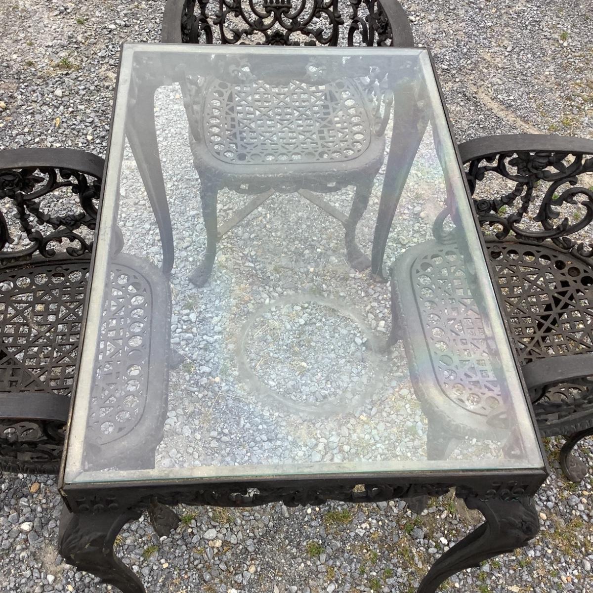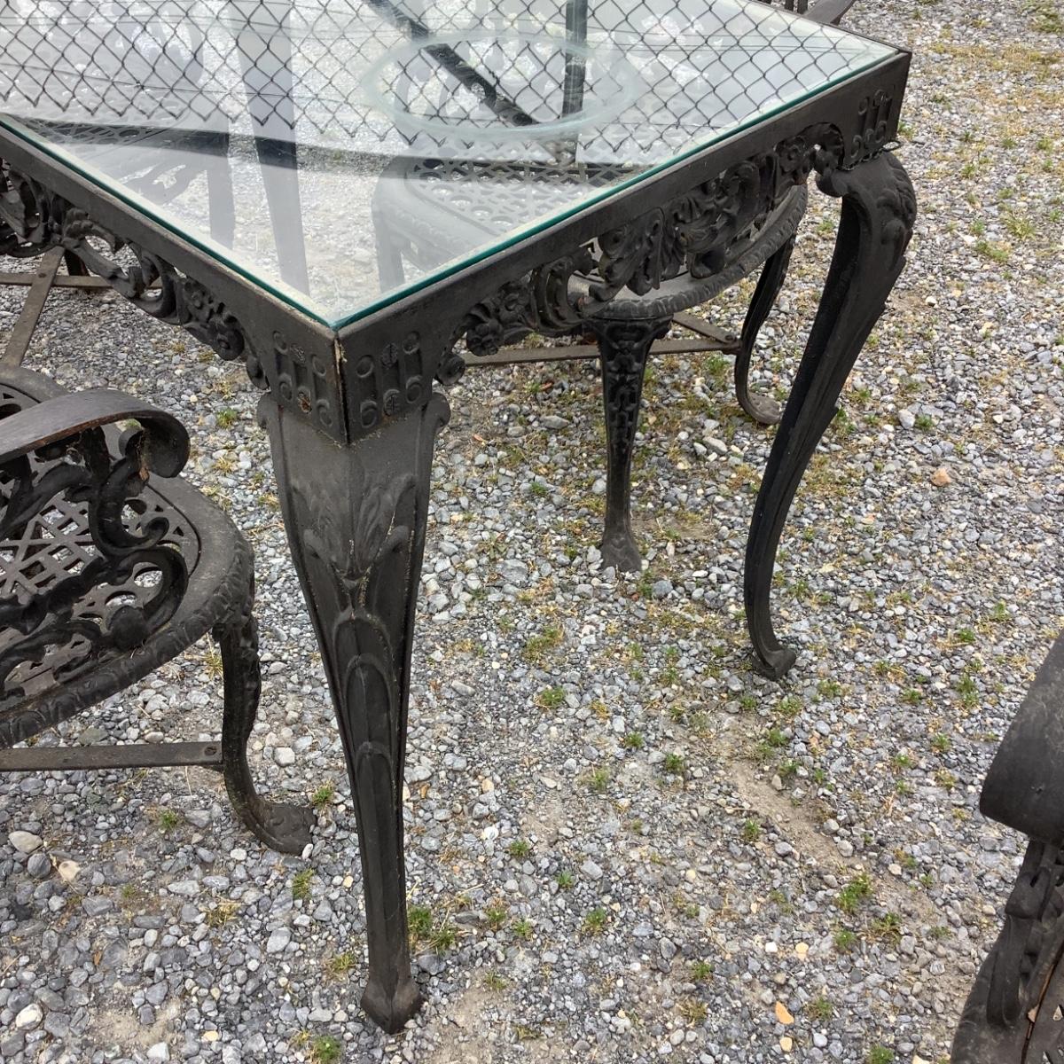 19th Century Robert Wood Cast Iron Garden Chairs & Glass-Top Table.