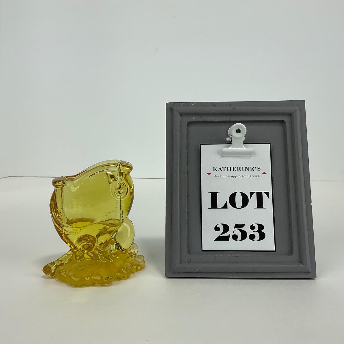 One Heisey by Imperial sunshine yellow fish matchbox holder. This piece has no damage, and appears to be in great shape with no visable chips, cracks, or broken pieces. Please see photos for details and condition. Any condition statement is given as a courtesy to a client, is an opinion, and should not be treated as a statement of fact. Reference to condition written, oral or within a condition report shall not be regarded as a full account of condition and may not include all defects, alterations, or restorations. Absence of a condition report does not imply a lot is flawless or lacking imperfections or damage. Katherine’s Auction & Appraisal Service shall have no responsibility for any error or omission. Returns shall not be accepted on the basis of condition. ::: Shipping is available on this lot. If you require shipping you must let us know at the close of the auction. We will coordinate with you after the item has been won. Shipping fees will include insurance up to or exceeding the value of all items being mailed. If you have any questions regarding this lot please contact the auctioneer either via this website, by direct email or by phone. PICK UP TIMES and other important information can be found in the TERMS and DESCRIPTION of the auction. Please take a look for pertinent information. Thanks!