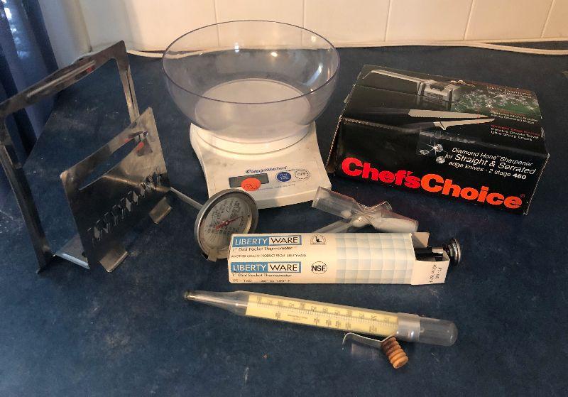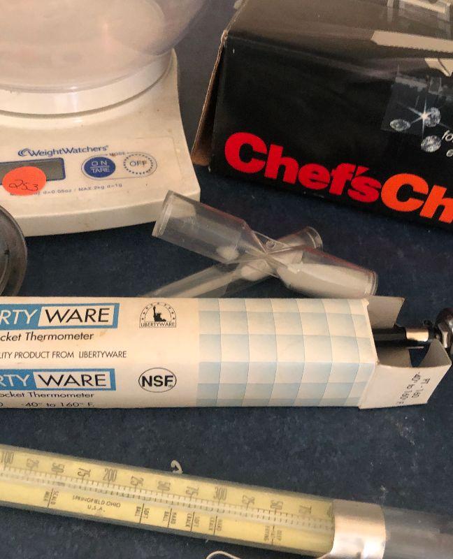 Includes weight watchers scale knife sharpener, for monitors, timers, and napkin holder. All good news condition. Great condition. This is an ONSITE Auction all items will need to be picked up on location. Please see auction description for pick up procedures.