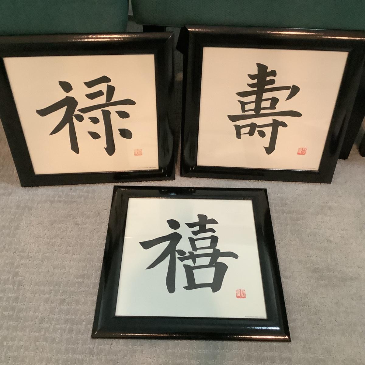 253 Lot of Three IKEA Chinese Wall Hangings Long Life, Good Health, Prosperous Future