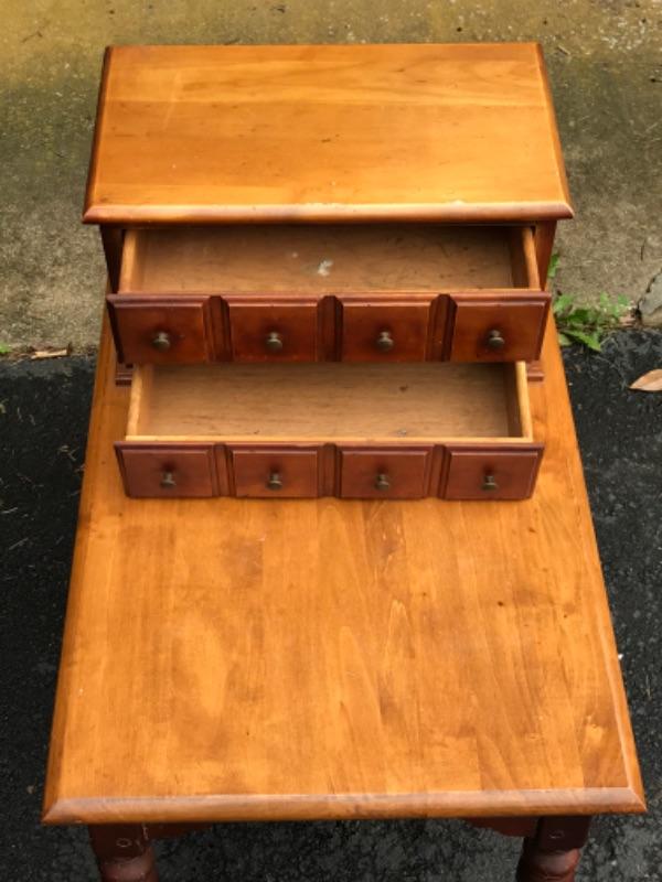 2 Drawer Wooden End Table. Measuring 20” W x 30” D x 26.25” T