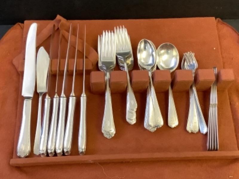2531 45 Piece Sterling Silver H Monogrammed Flatware Set