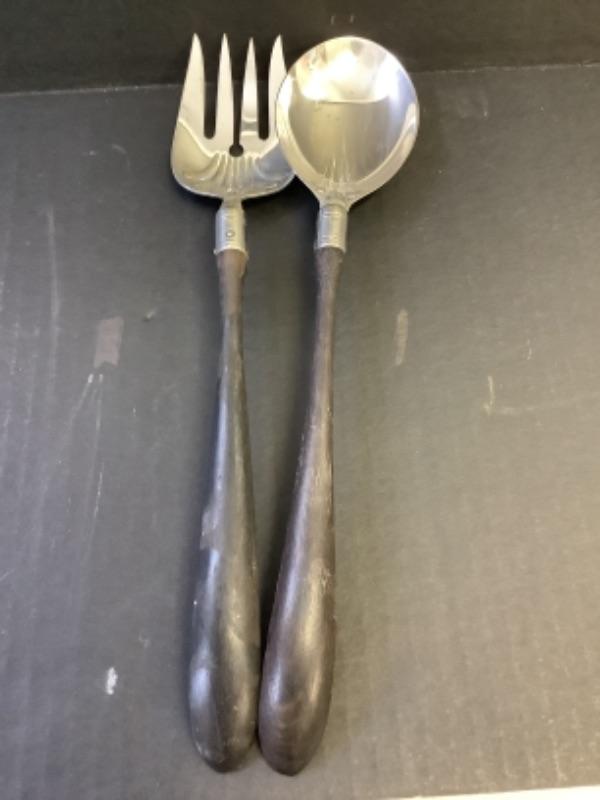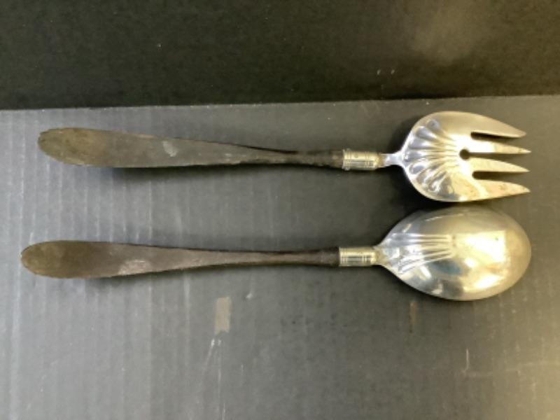 Two piece sterling silver with wood handle salad serving set, weighs 124.8 grams