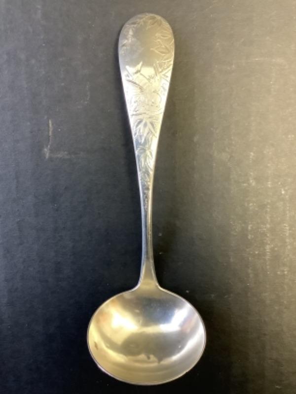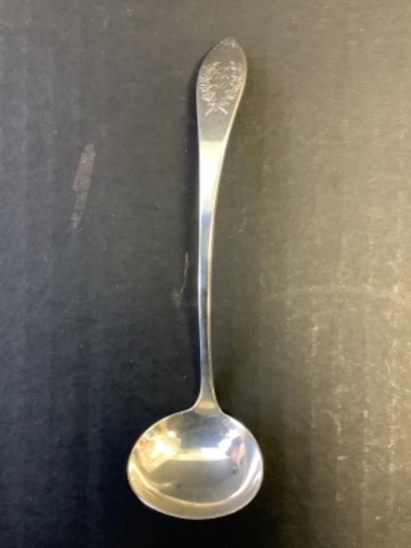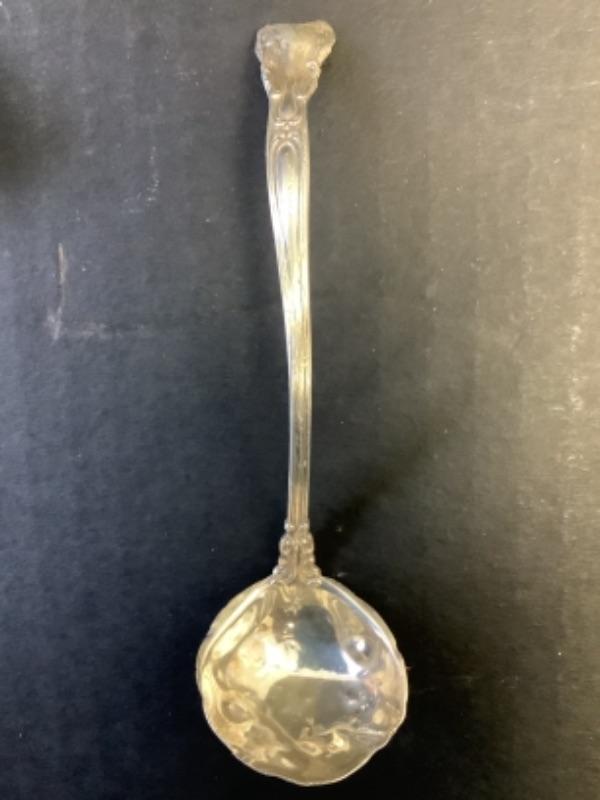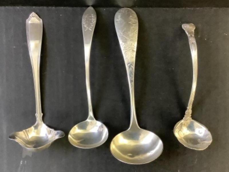 Four sterling silver ladles, 2 small measuring 5”- 1 is monogrammed with the letter B by Balt & Bro. 1 is marked SSMC Sterling, 1 medium measuring 5-1/2” and one large measuring 6”, together they weigh 88 grams