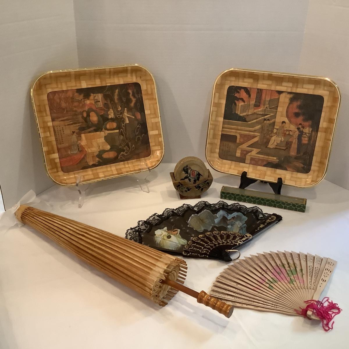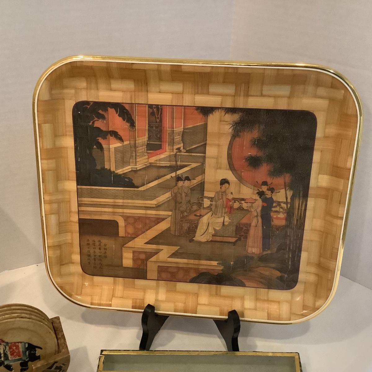 Two decorative bamboo style trays measuring 12.5"x 11"
