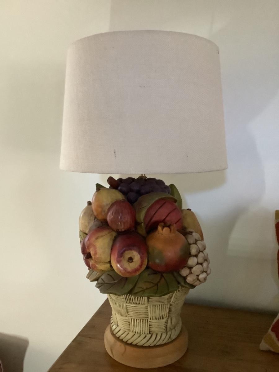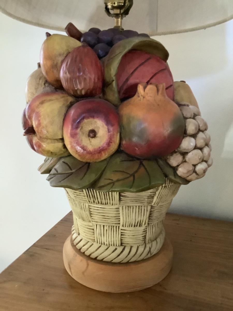 Basket of Fruit Lamp, Composite, with Wooden Base, Shade included -