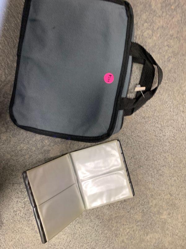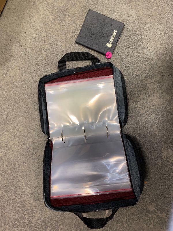 Zip up binder with sealable bags. Small booklet with clear sleeves.