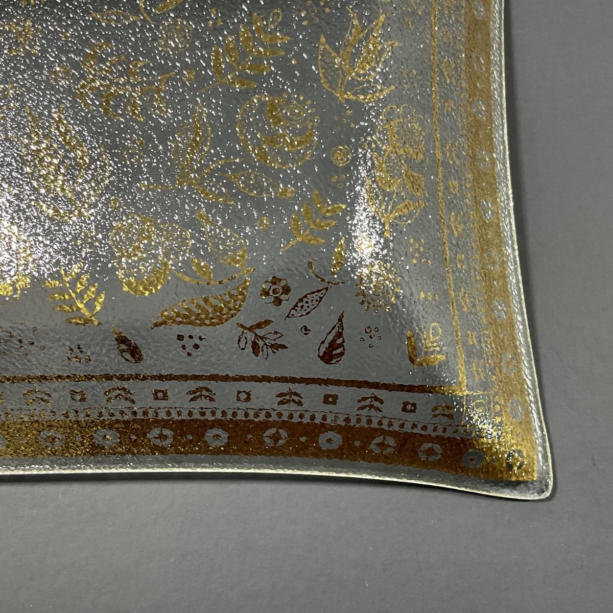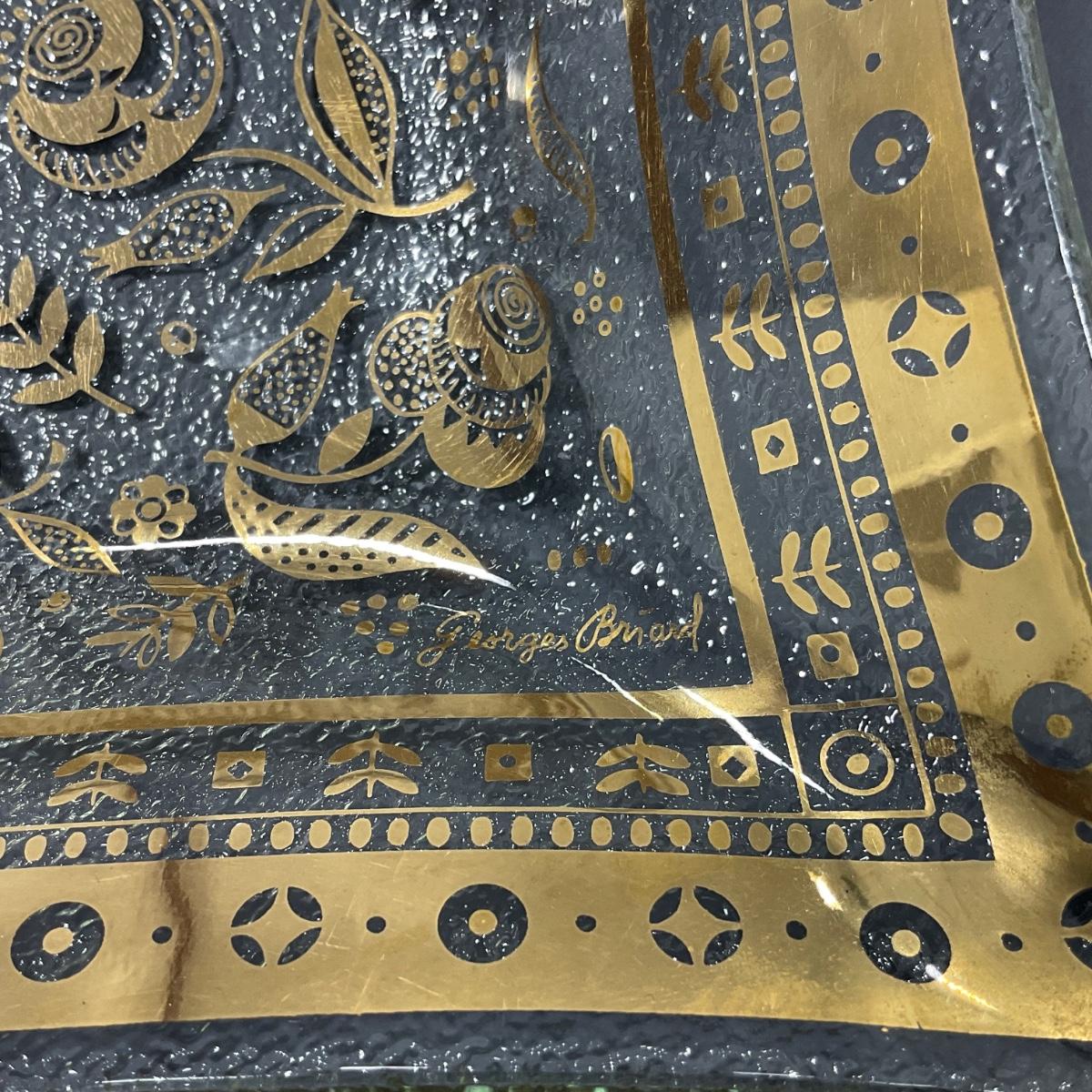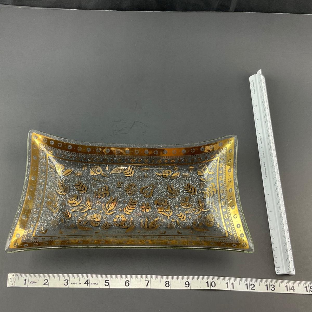 One signed mid century George Briard rectangle tray serving dish platter. This piece has no damage, and appears to be in great shape with no visible chips, cracks, or broken pieces. Please see photos for details and condition. Any condition statement is given as a courtesy to a client, is an opinion, and should not be treated as a statement of fact. Reference to condition written, oral or within a condition report shall not be regarded as a full account of condition and may not include all defects, alterations, or restorations. Absence of a condition report does not imply a lot is flawless or lacking imperfections or damage. Katherine’s Auction & Appraisal Service shall have no responsibility for any error or omission. Returns shall not be accepted on the basis of condition. ::: Shipping is available on this lot. If you require shipping you must let us know at the close of the auction. We will coordinate with you after the item has been won. Shipping fees will include insurance up to or exceeding the value of all items being mailed. If you have any questions regarding this lot please contact the auctioneer either via this website, by direct email or by phone. PICK UP TIMES and other important information can be found in the TERMS and DESCRIPTION of the auction. Please take a look for pertinent information. Thanks!