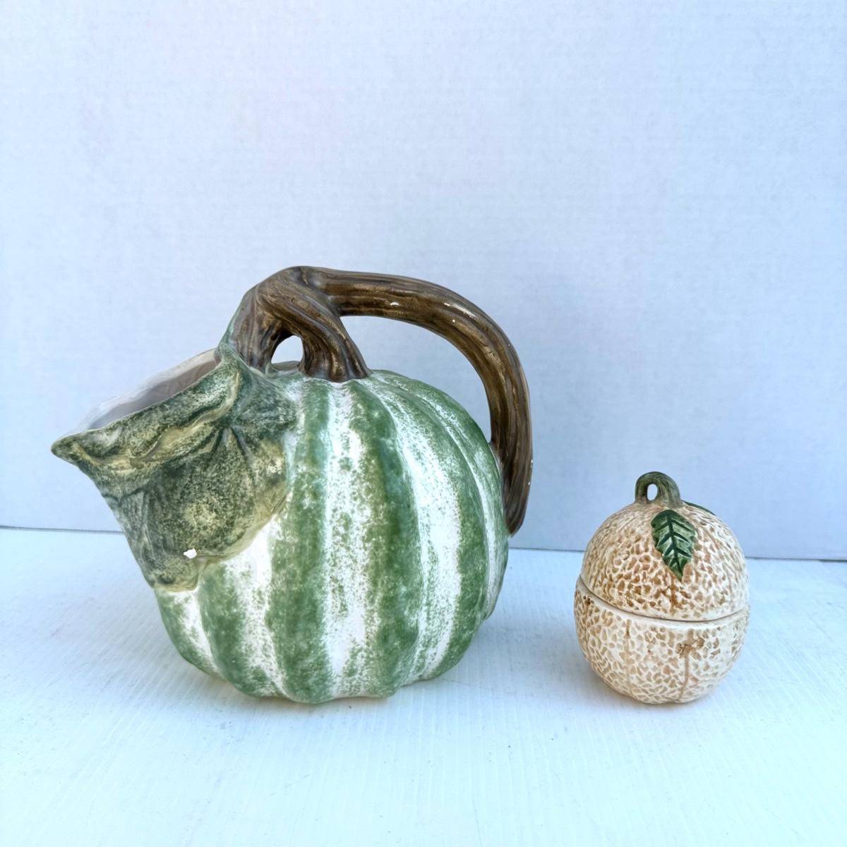 254 Melon Pottery Pitcher with Cantaloupe Salt and Pepper
