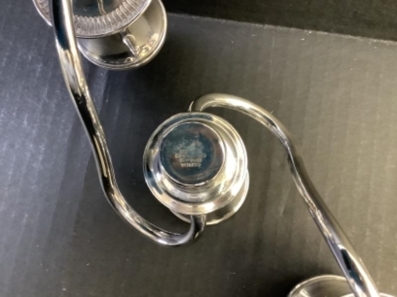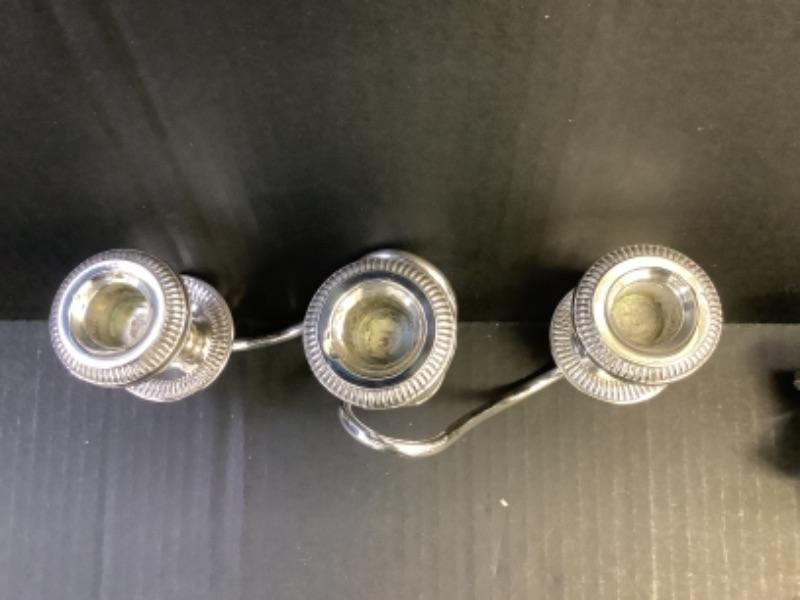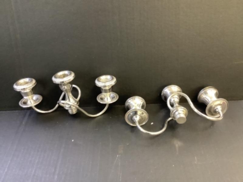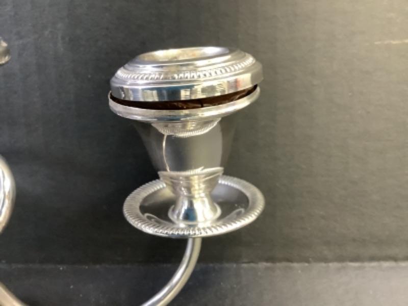 Pair of Hallmark sterling silver candelabra candlestick toppers, each one holds 3 candles, cement weighted, one has some damage (see photos)