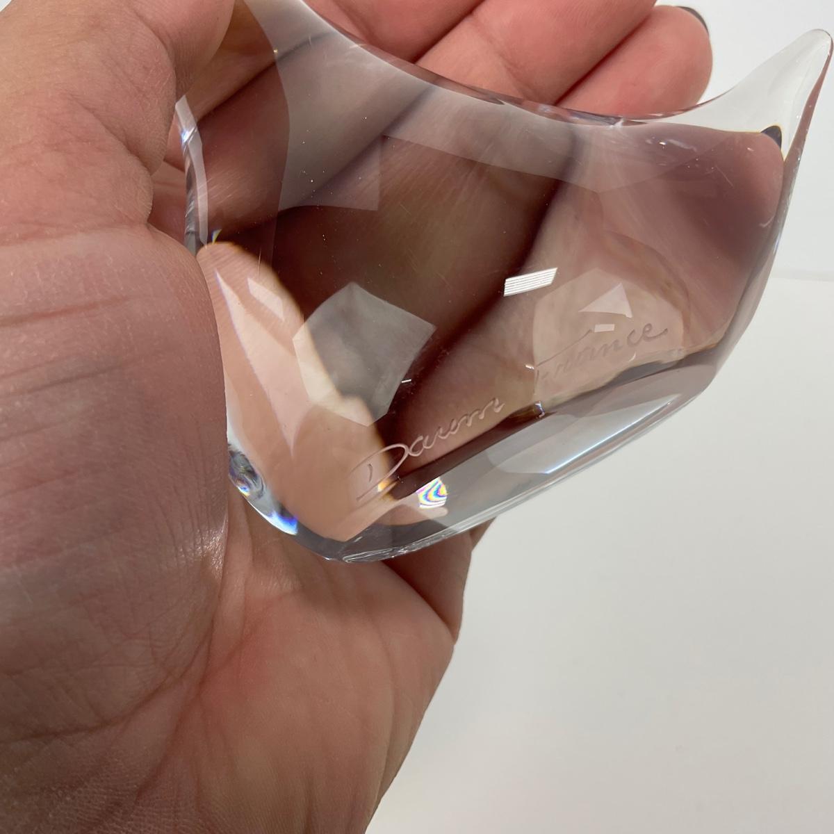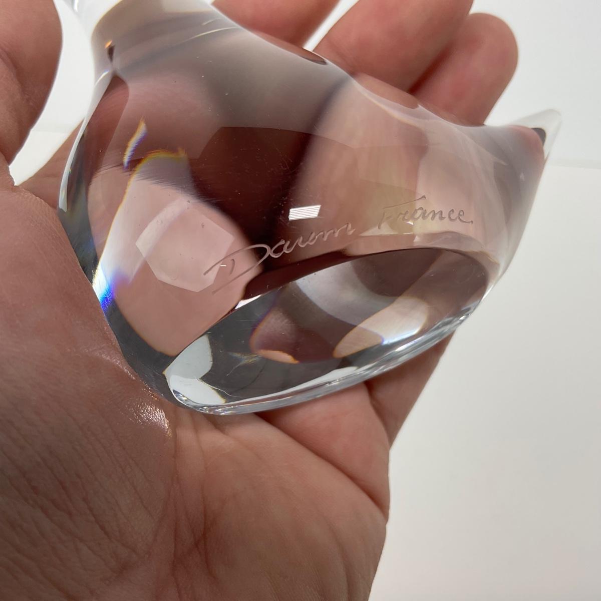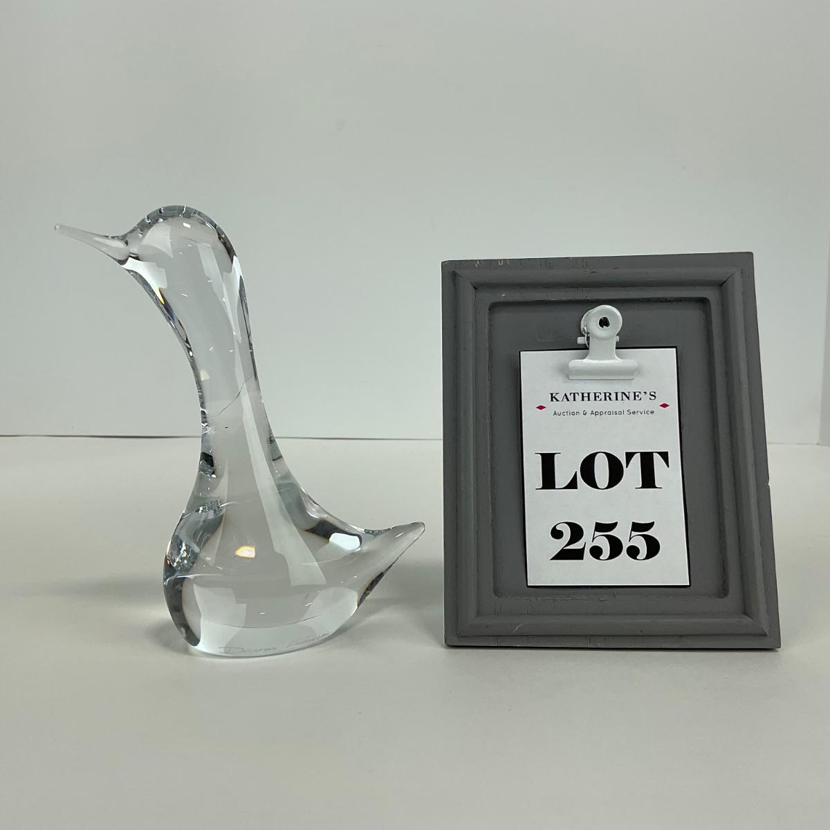 One signed clear glass Daum France duck figure This piece has no damage, and appears to be in great shape with no visable chips, cracks, or broken pieces. Please see photos for details and condition. Any condition statement is given as a courtesy to a client, is an opinion, and should not be treated as a statement of fact. Reference to condition written, oral or within a condition report shall not be regarded as a full account of condition and may not include all defects, alterations, or restorations. Absence of a condition report does not imply a lot is flawless or lacking imperfections or damage. Katherine’s Auction & Appraisal Service shall have no responsibility for any error or omission. Returns shall not be accepted on the basis of condition. ::: Shipping is available on this lot. If you require shipping you must let us know at the close of the auction. We will coordinate with you after the item has been won. Shipping fees will include insurance up to or exceeding the value of all items being mailed. If you have any questions regarding this lot please contact the auctioneer either via this website, by direct email or by phone. PICK UP TIMES and other important information can be found in the TERMS and DESCRIPTION of the auction. Please take a look for pertinent information. Thanks!