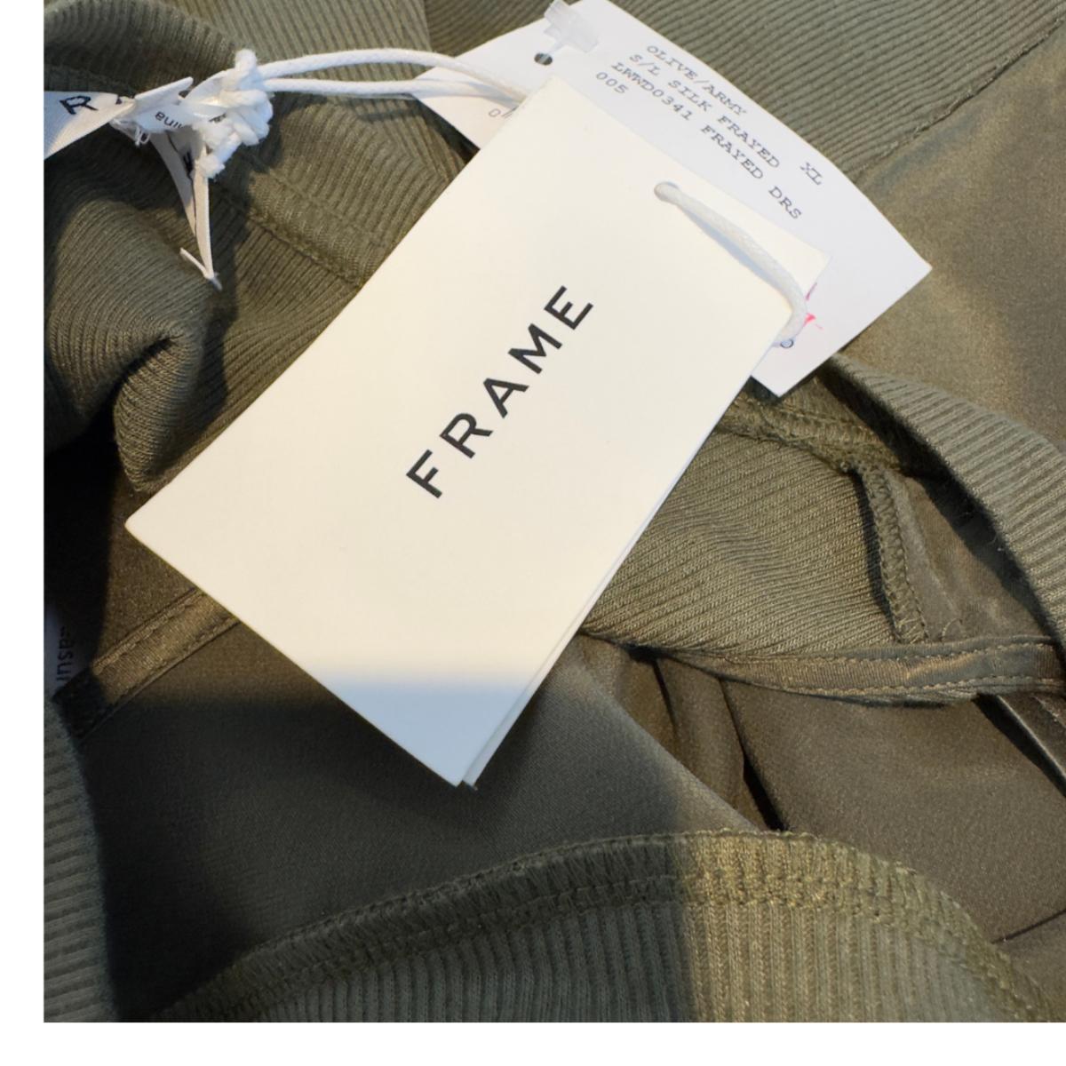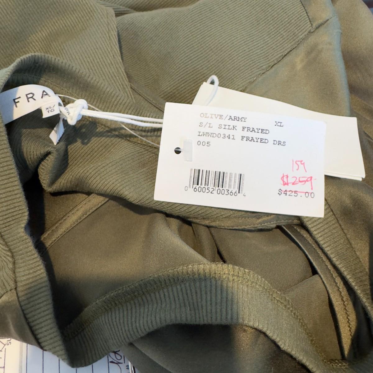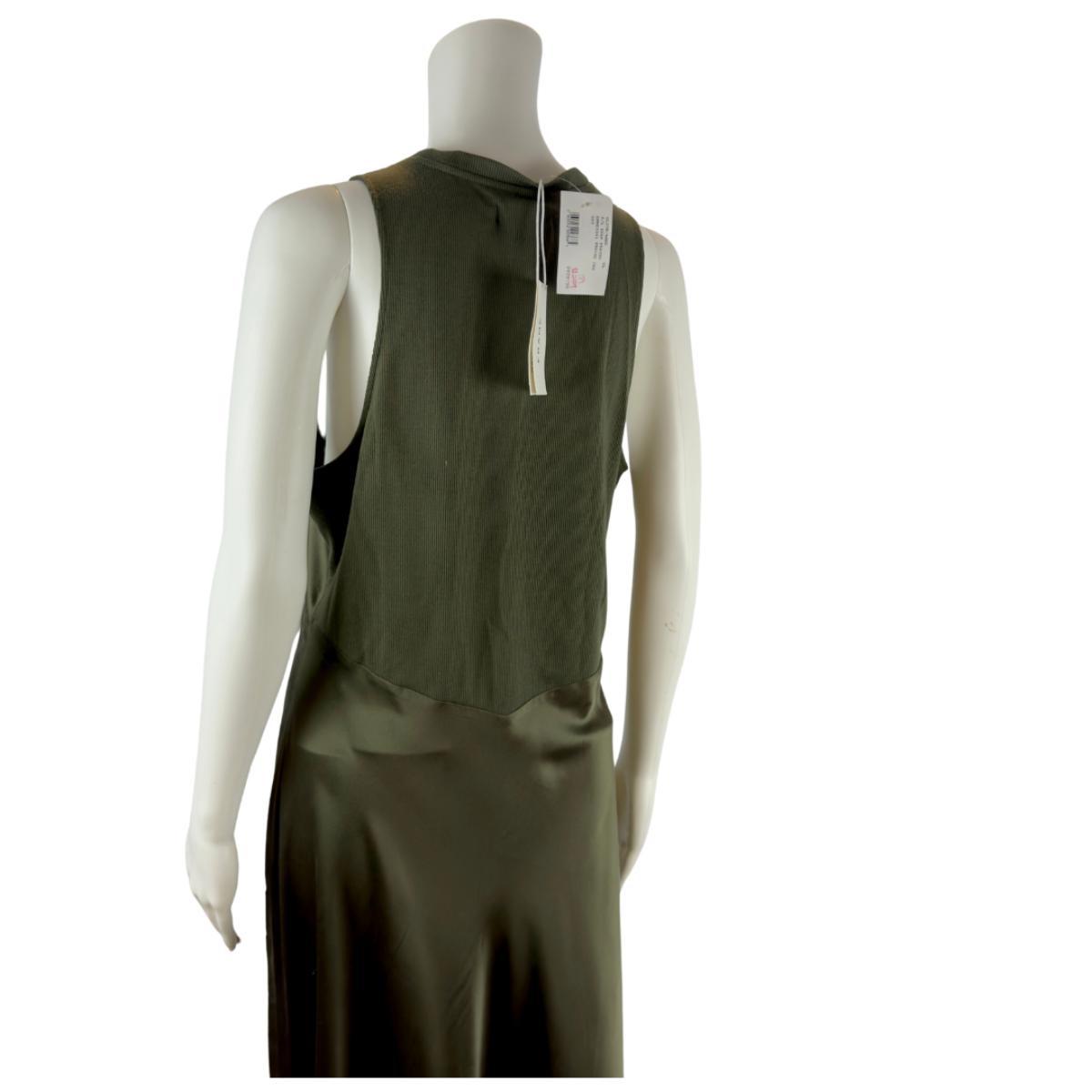 New with tags olive colored dress, sleeveless, frayed edge design, racerback.