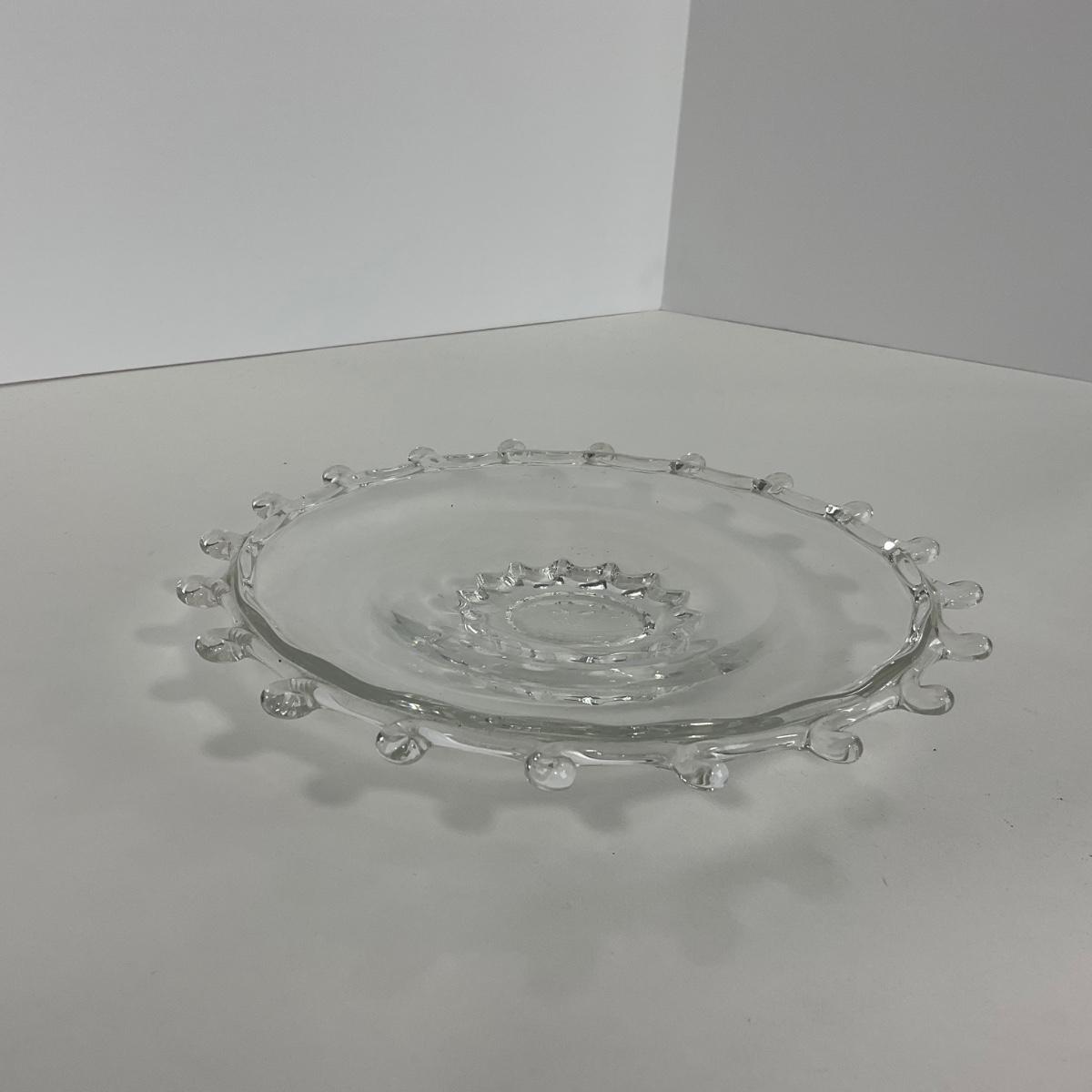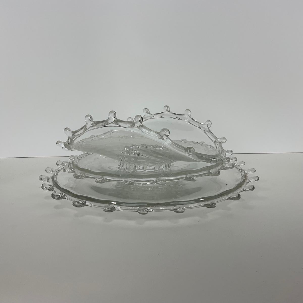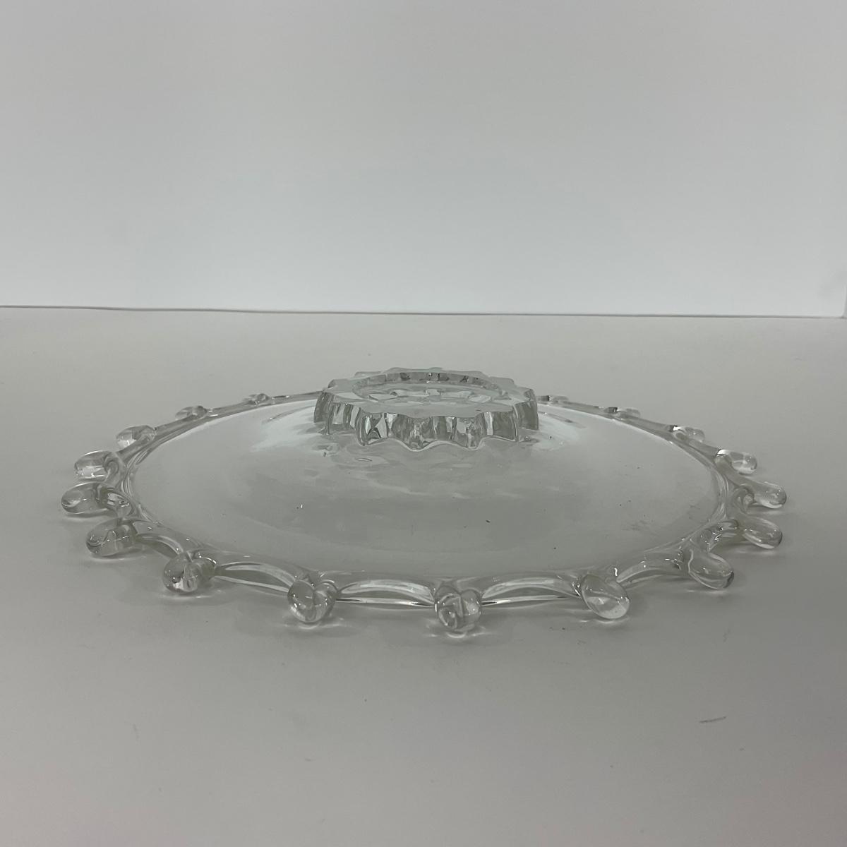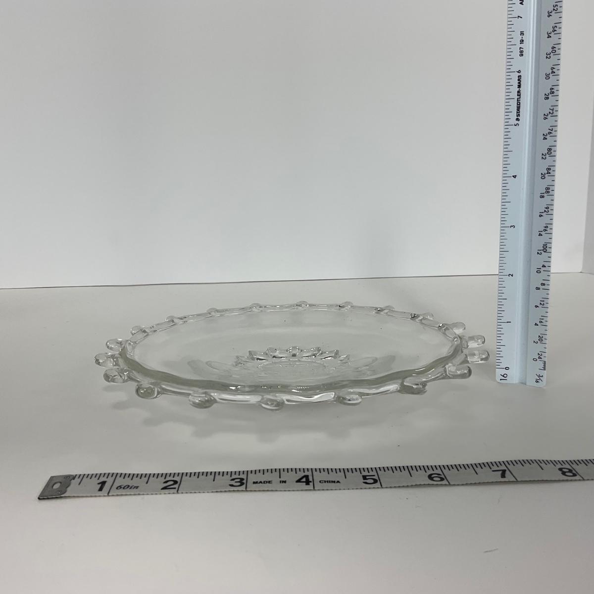 Three pieces of Lariat Heisey Glass Co. including one larger plate one smaller plate and one curved glass dish. Please see photos for details and condition. ::: Shipping is available on this lot. If you require shipping you must let us know at the close of the auction. We will coordinate with you after the item has been won. Shipping fees will include insurance up to or exceeding the value of all items being mailed. If you have any questions regarding this lot please contact the auctioneer either via this website, by direct email or by phone. PICK UP TIMES and other important information can be found in the TERMS and DESCRIPTION of the auction. Please take a look for pertinent information. Thanks!