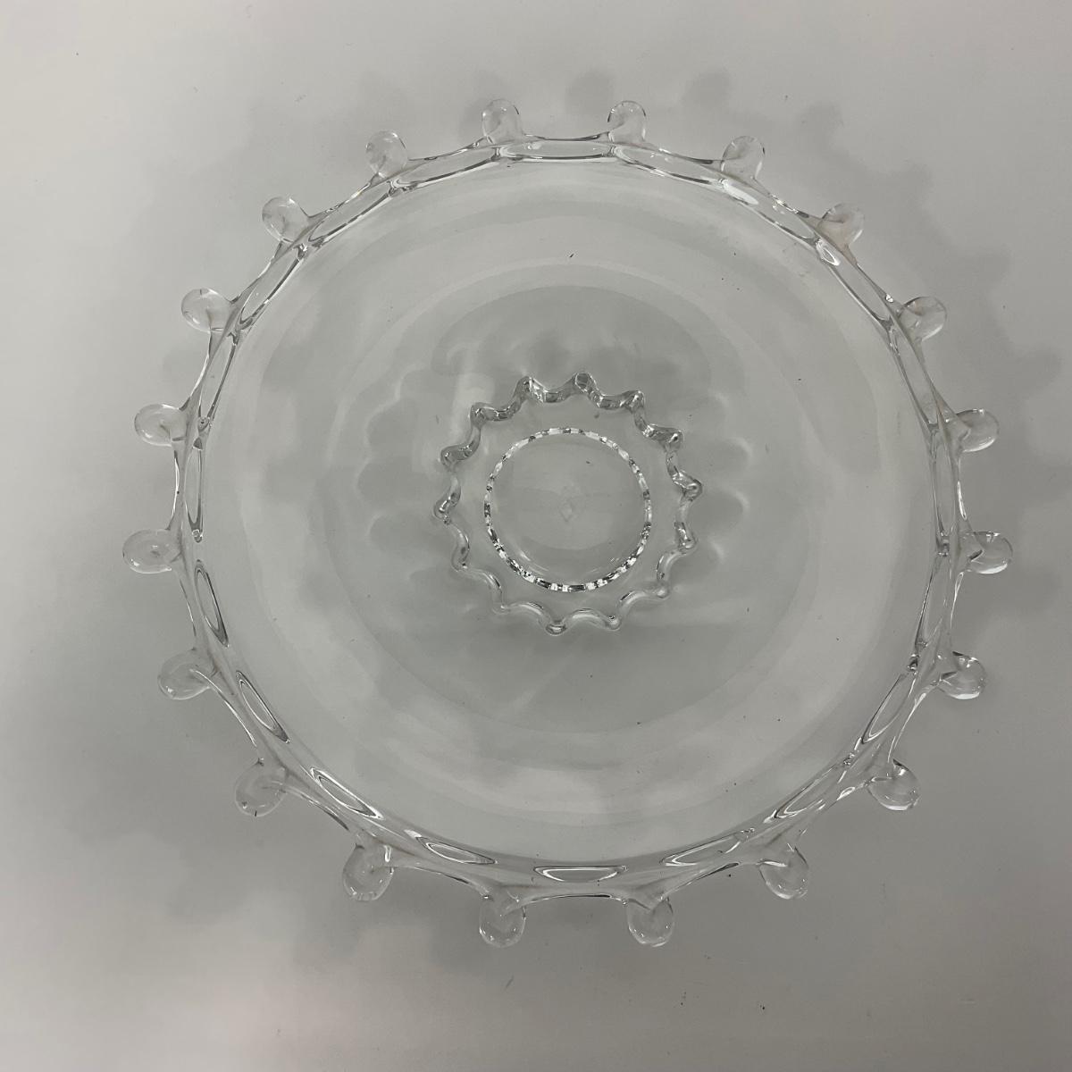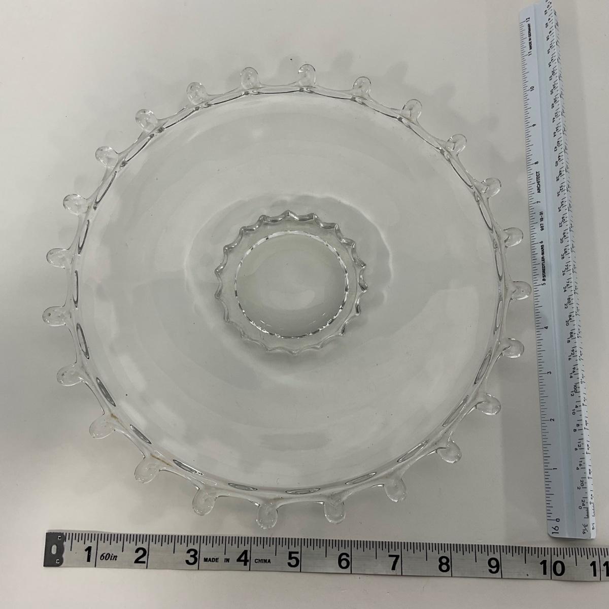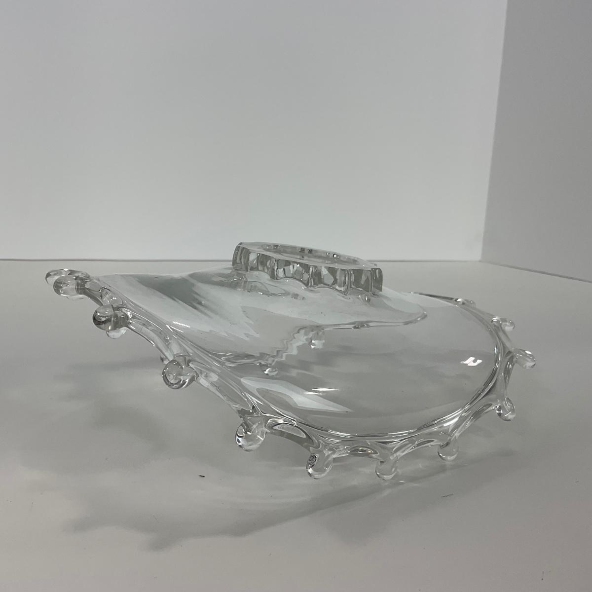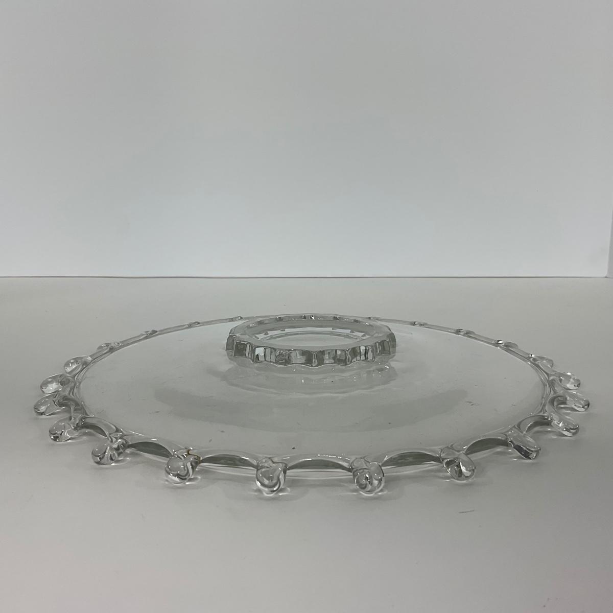 Three pieces of Lariat Heisey Glass Co. including one larger plate one smaller plate and one curved glass dish. Please see photos for details and condition. ::: Shipping is available on this lot. If you require shipping you must let us know at the close of the auction. We will coordinate with you after the item has been won. Shipping fees will include insurance up to or exceeding the value of all items being mailed. If you have any questions regarding this lot please contact the auctioneer either via this website, by direct email or by phone. PICK UP TIMES and other important information can be found in the TERMS and DESCRIPTION of the auction. Please take a look for pertinent information. Thanks!