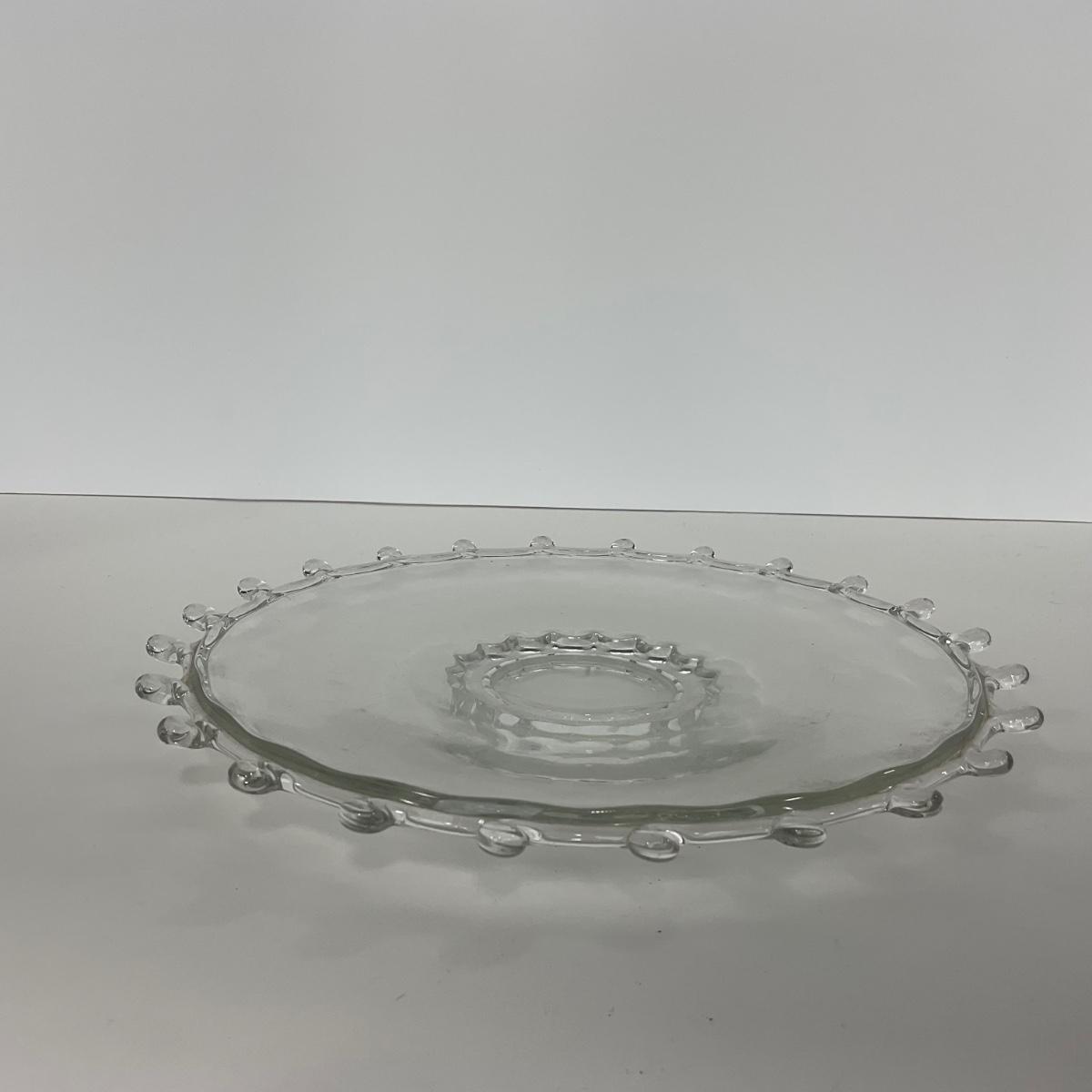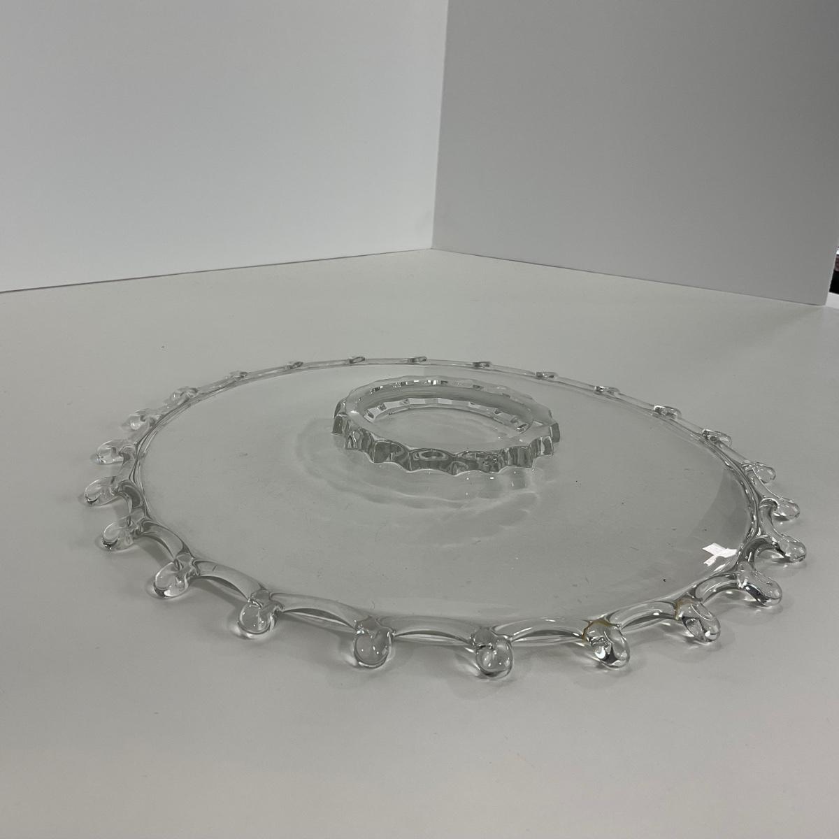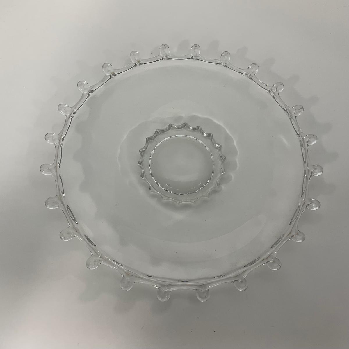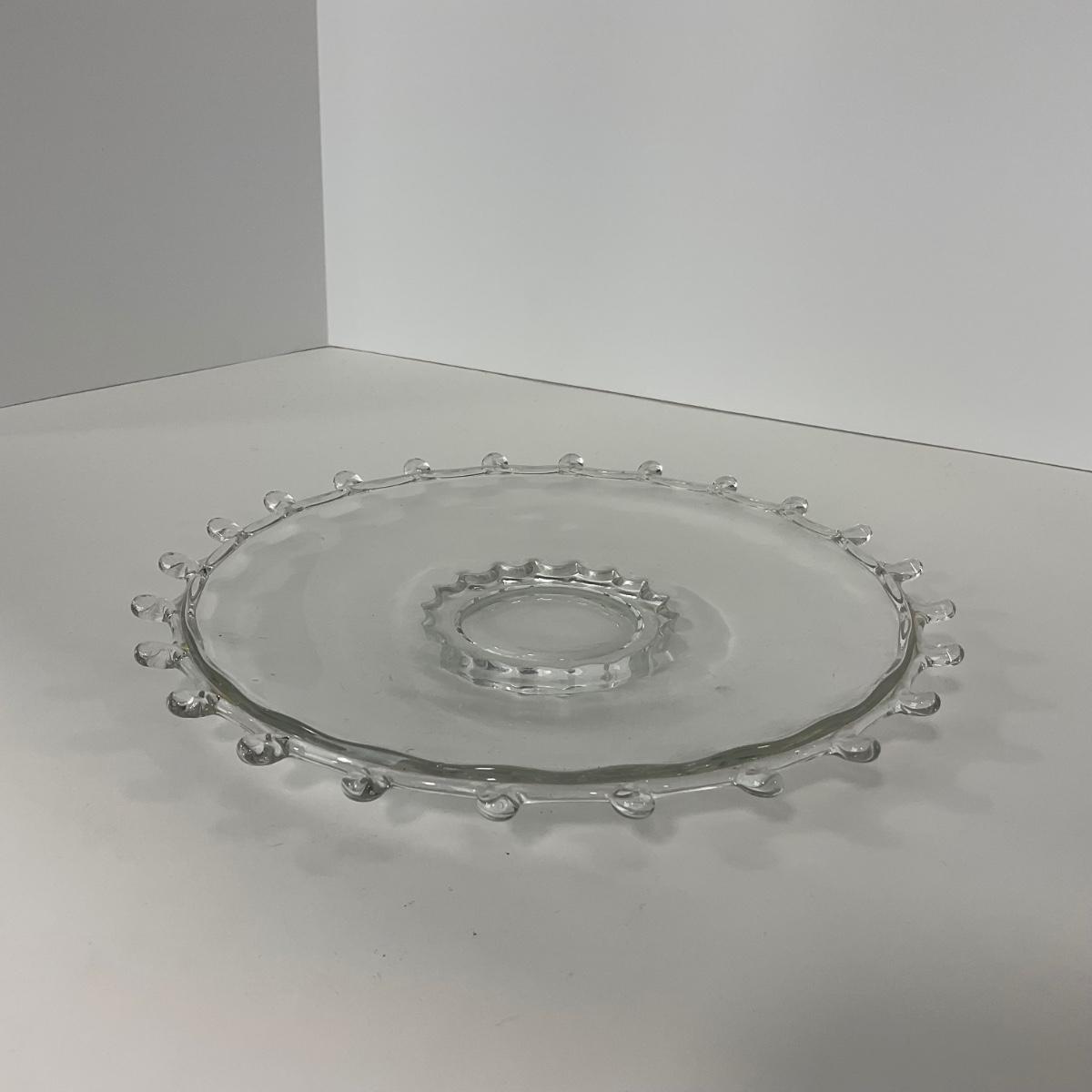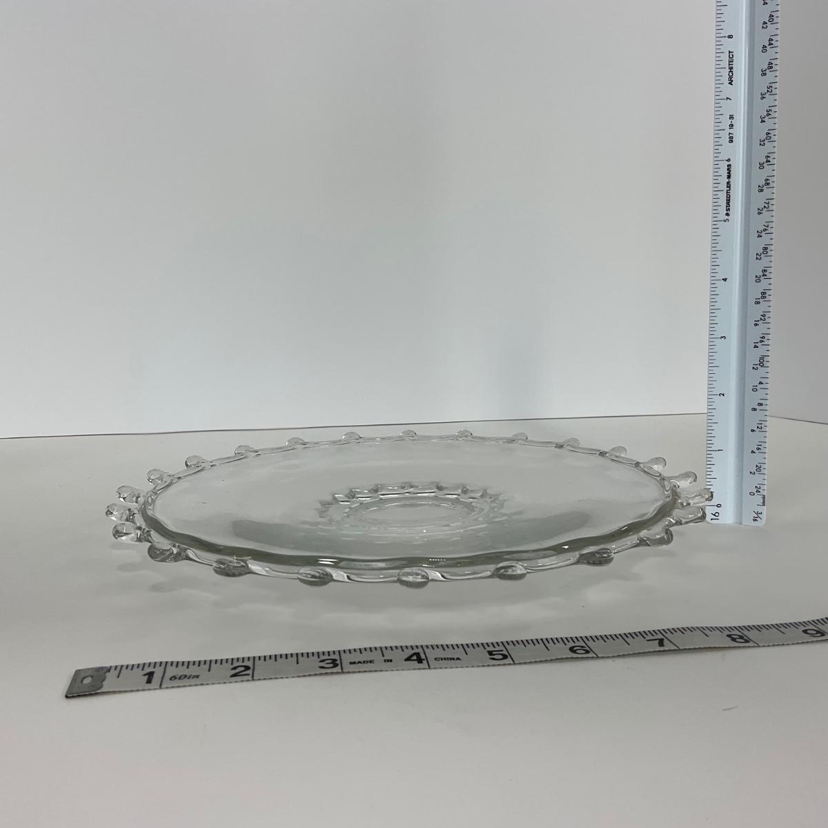 Three pieces of Lariat Heisey Glass Co. including one larger plate one smaller plate and one curved glass dish. Please see photos for details and condition. ::: Shipping is available on this lot. If you require shipping you must let us know at the close of the auction. We will coordinate with you after the item has been won. Shipping fees will include insurance up to or exceeding the value of all items being mailed. If you have any questions regarding this lot please contact the auctioneer either via this website, by direct email or by phone. PICK UP TIMES and other important information can be found in the TERMS and DESCRIPTION of the auction. Please take a look for pertinent information. Thanks!