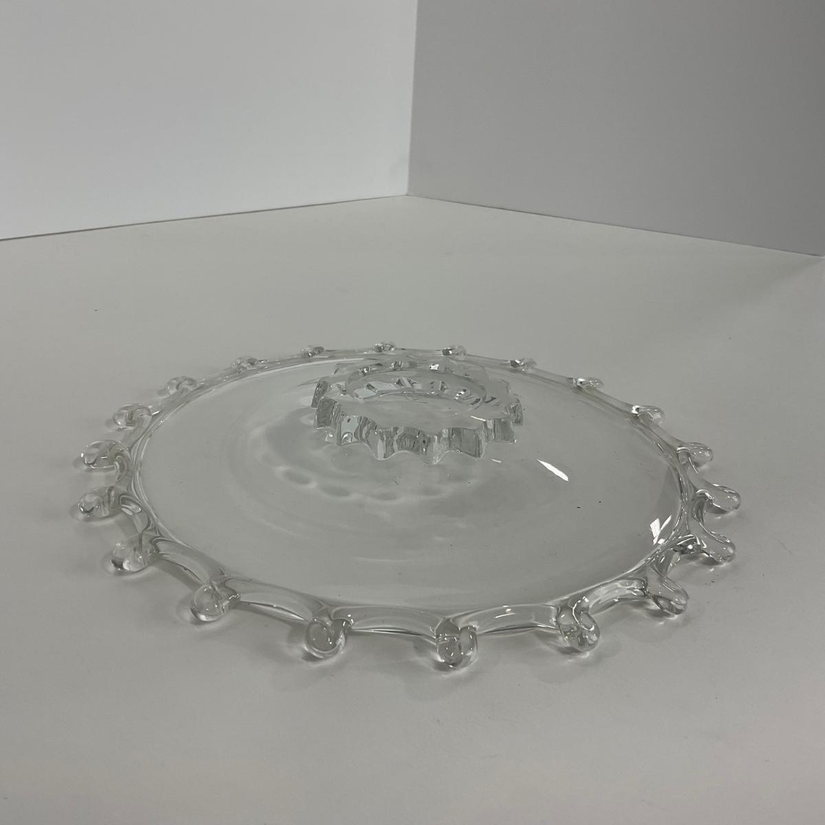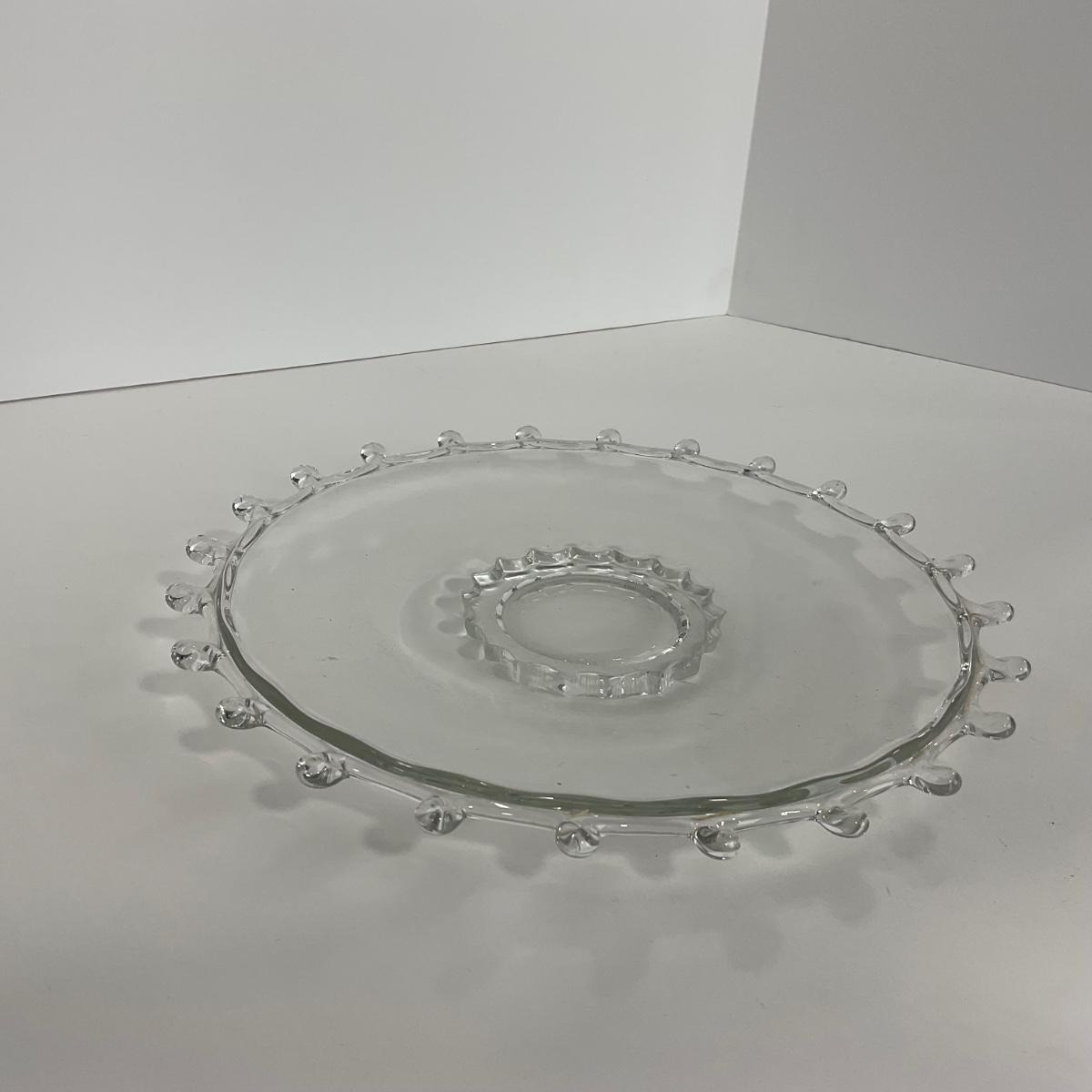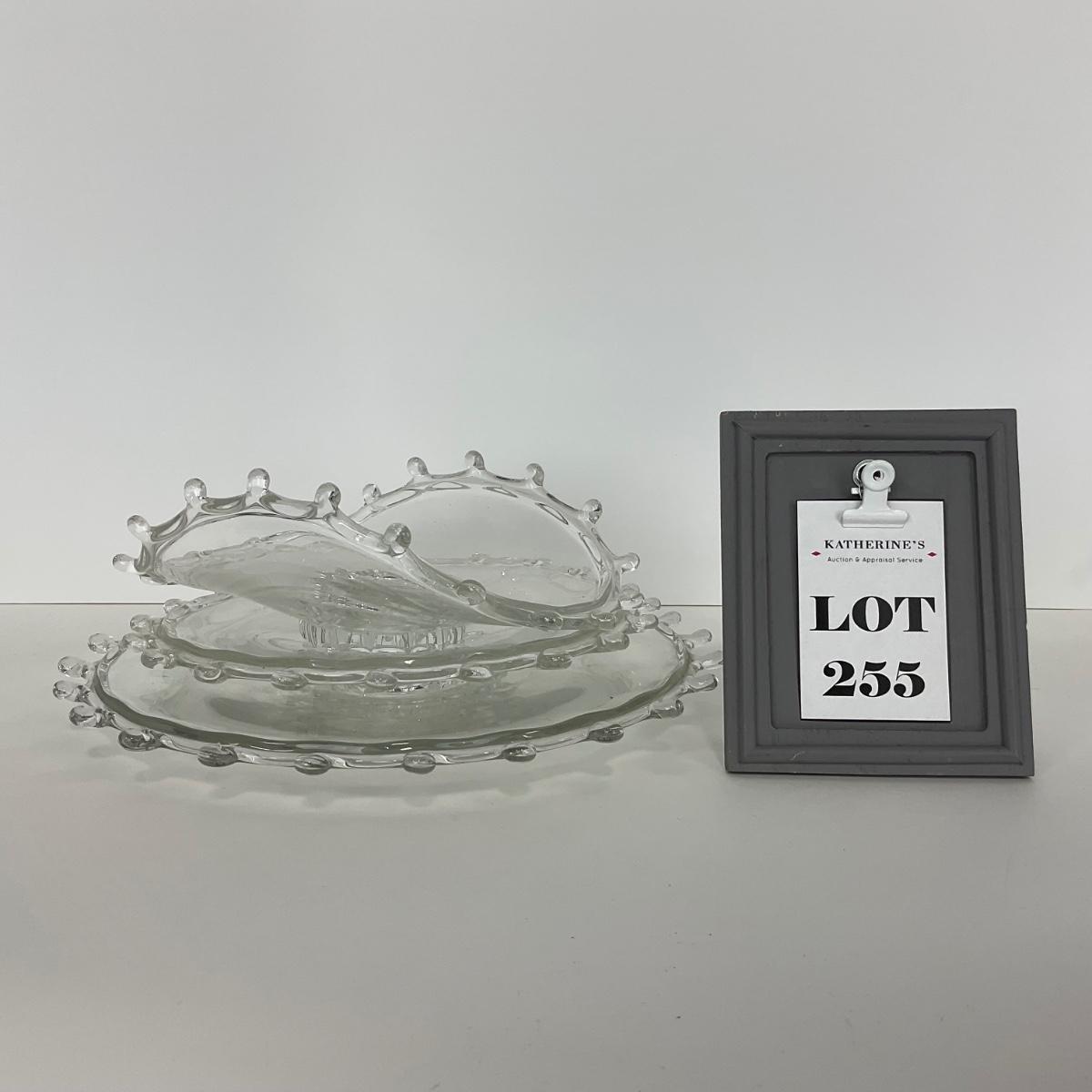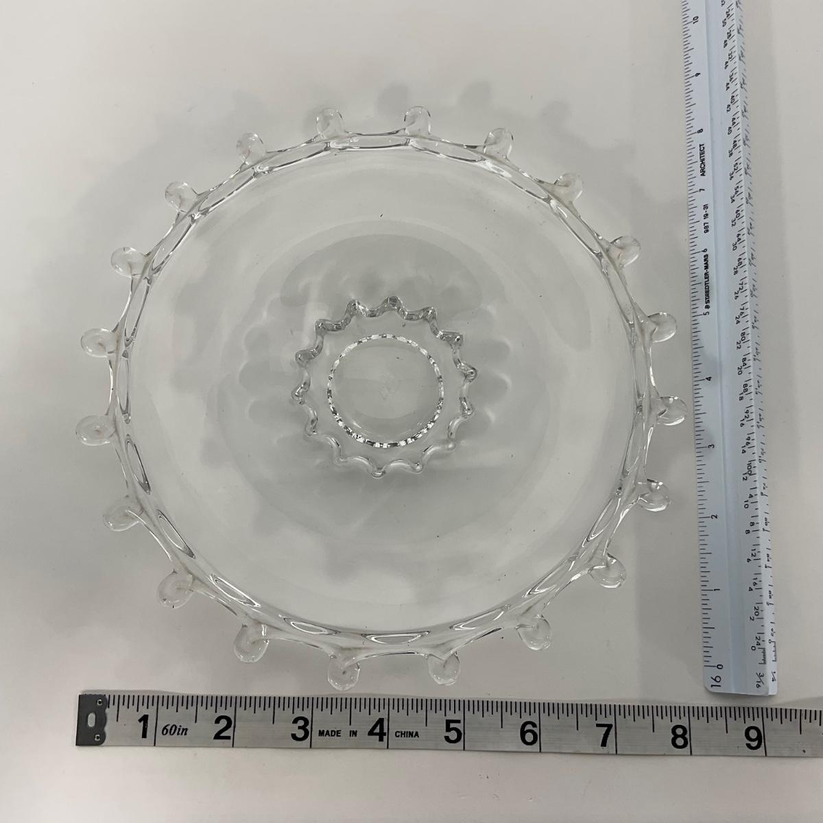 Three pieces of Lariat Heisey Glass Co. including one larger plate one smaller plate and one curved glass dish. Please see photos for details and condition. ::: Shipping is available on this lot. If you require shipping you must let us know at the close of the auction. We will coordinate with you after the item has been won. Shipping fees will include insurance up to or exceeding the value of all items being mailed. If you have any questions regarding this lot please contact the auctioneer either via this website, by direct email or by phone. PICK UP TIMES and other important information can be found in the TERMS and DESCRIPTION of the auction. Please take a look for pertinent information. Thanks!