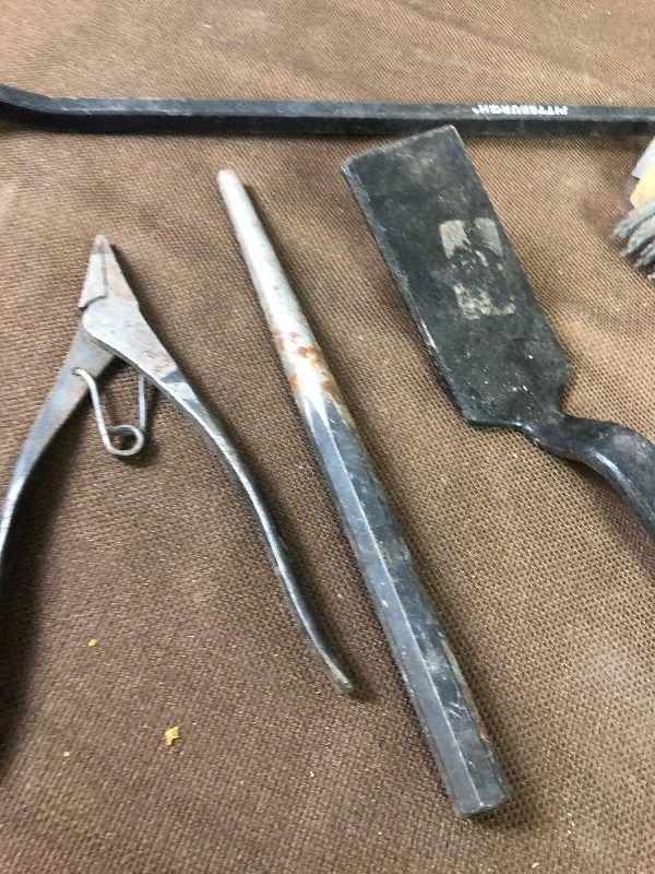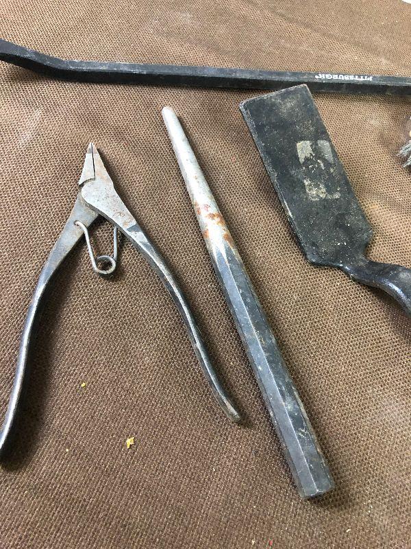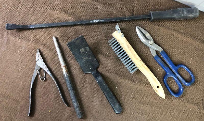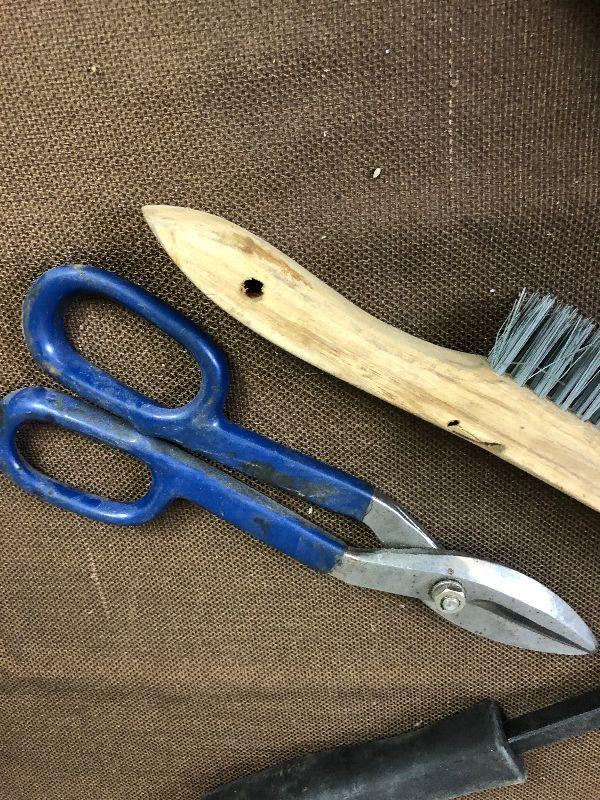 #255 Large lot of hand tools: Chisel, tin snips, Wire Brushed
