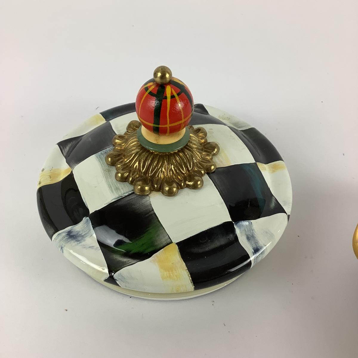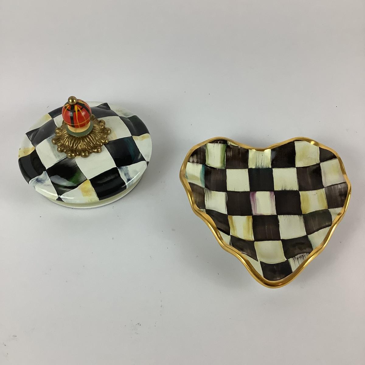 255 Mackenzie Childs Courtly Check Heart Dish and Canister Lid