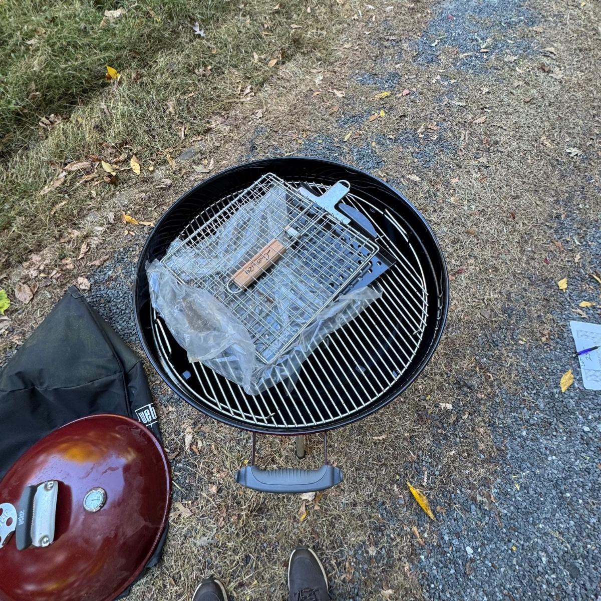 Weber Charcoal Grill/Out of Box:Like New/Never Used. Comes with large bag of wood charcoal. Please see pics for details.