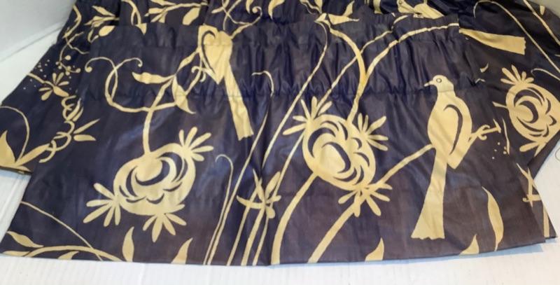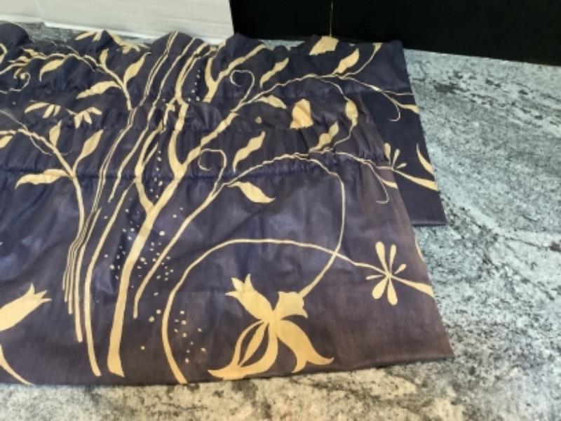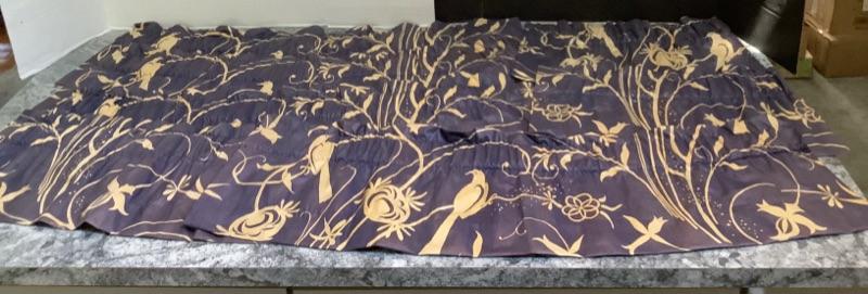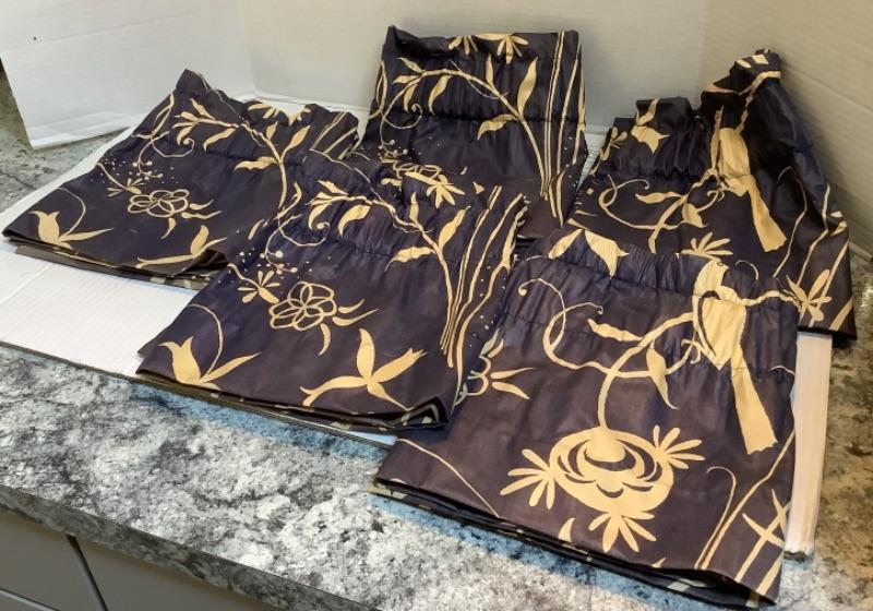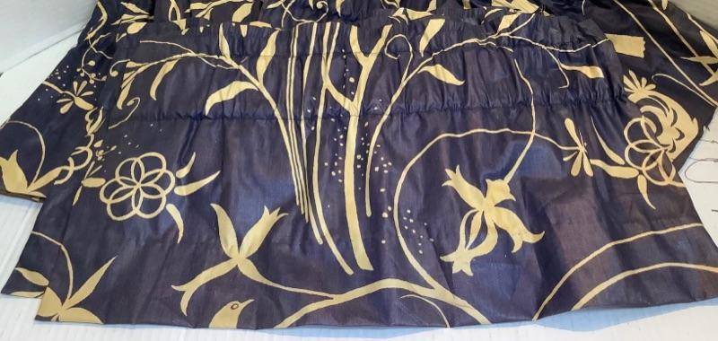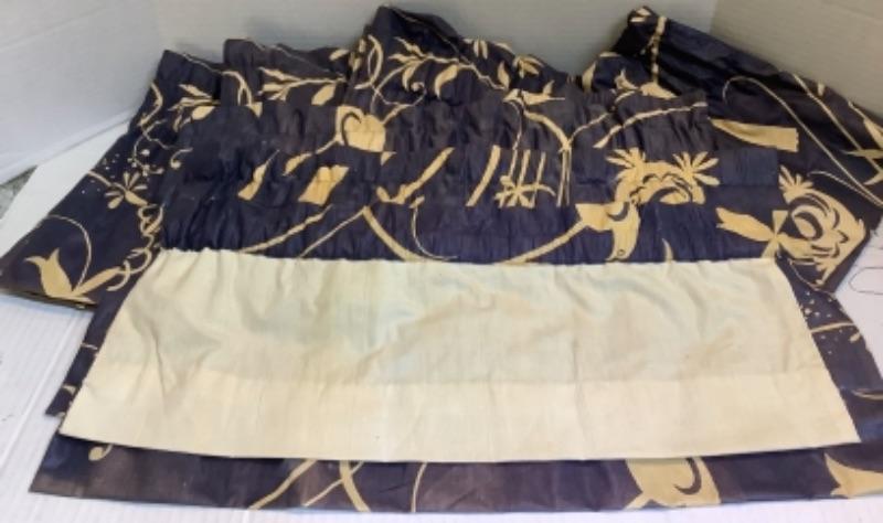 Navy blue and cream colored valances- 5 measure 48” wide, 2 measure 24” wide