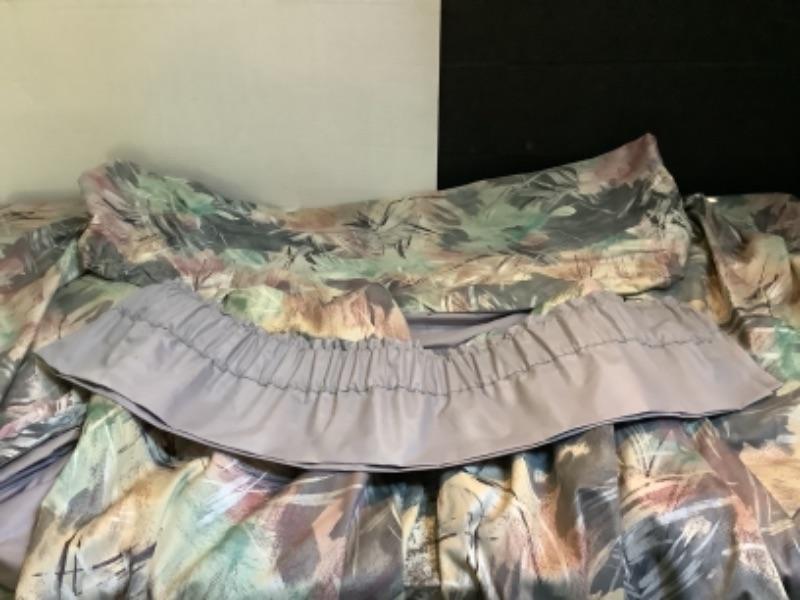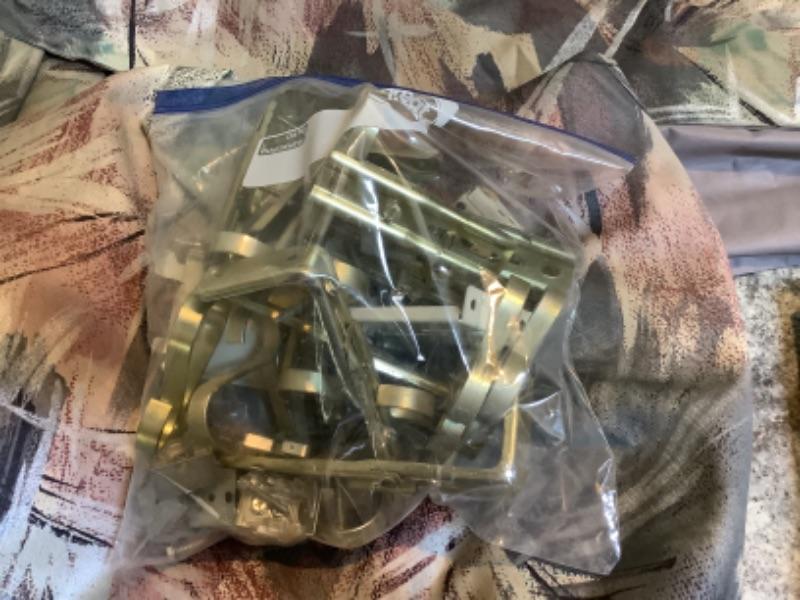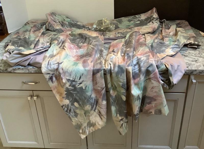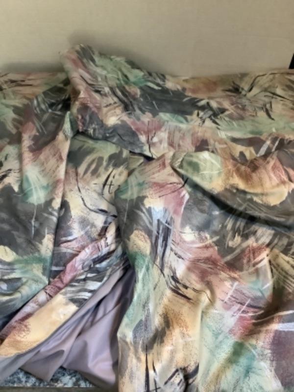 Three curtain swags with hardware for curtain rod (not included), swags measure 43” wide and 142” long (1) and 38” wide and 142” long (2)