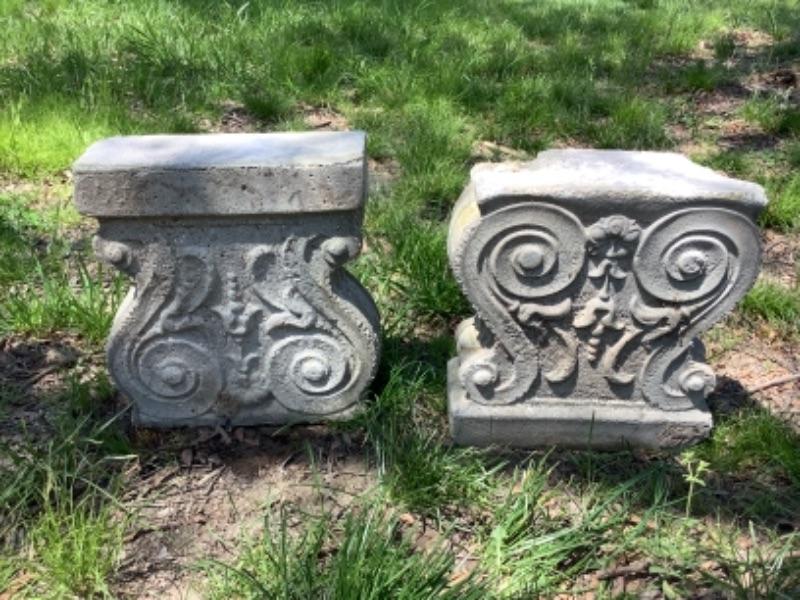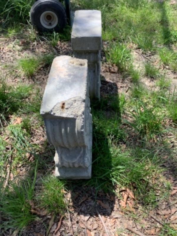 Two bases for cement outdoor bench, one has a little damage (see photos), measurements are 14” high 13” wide and 5” thick