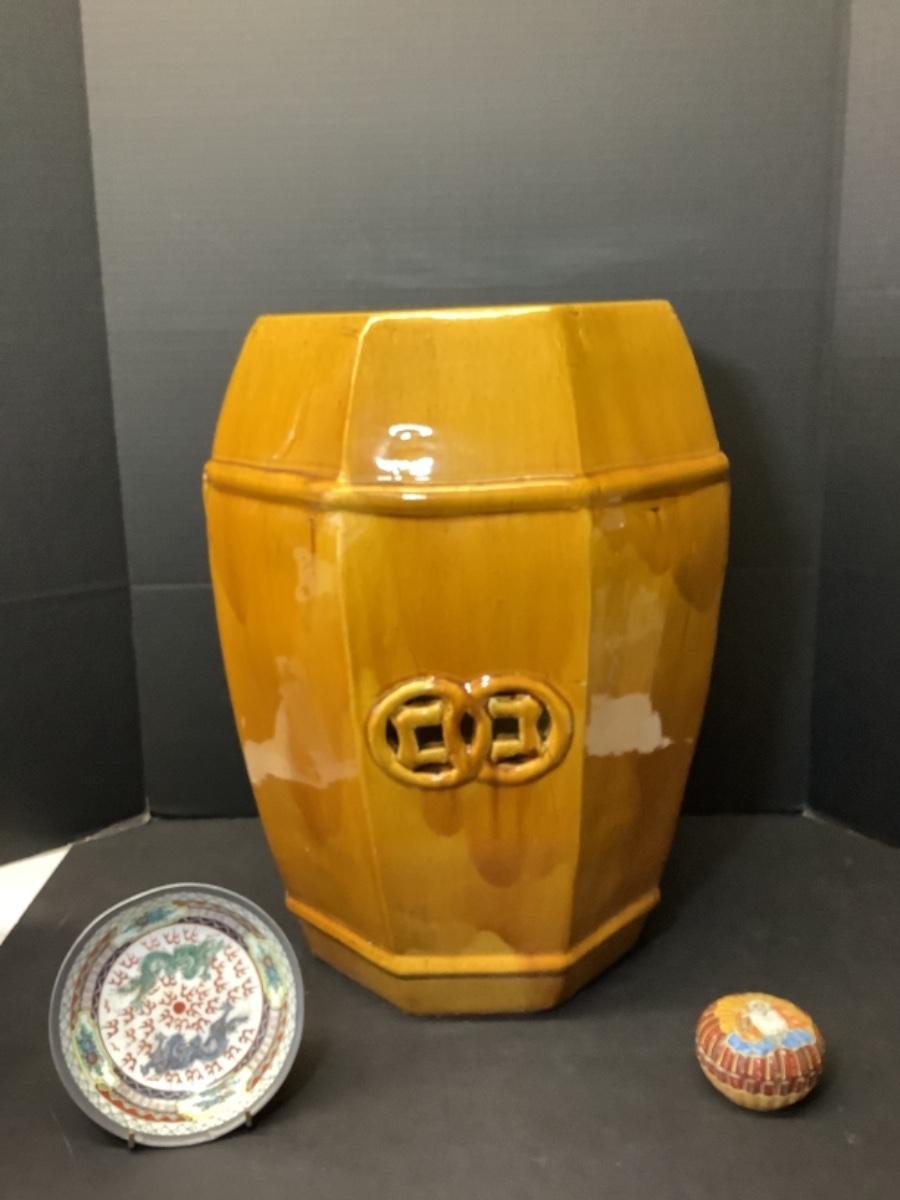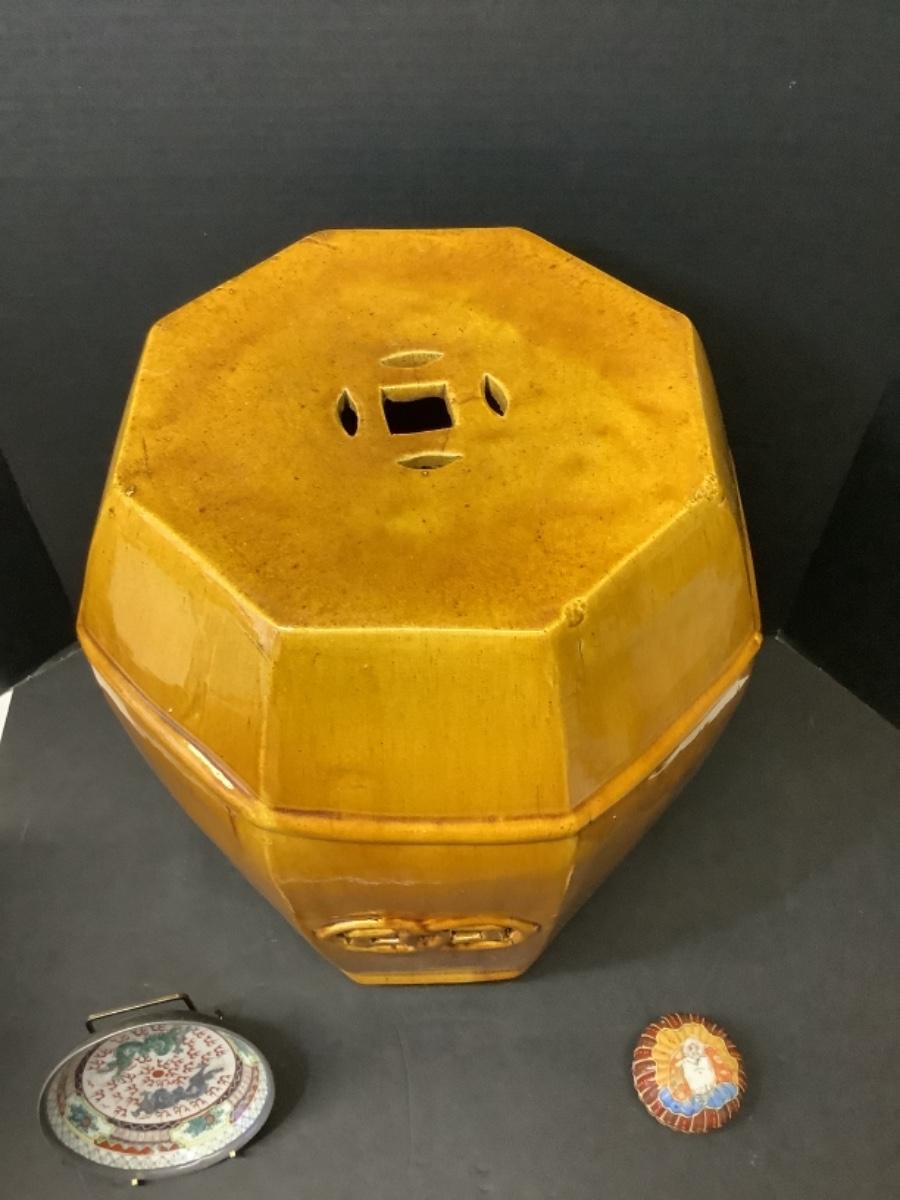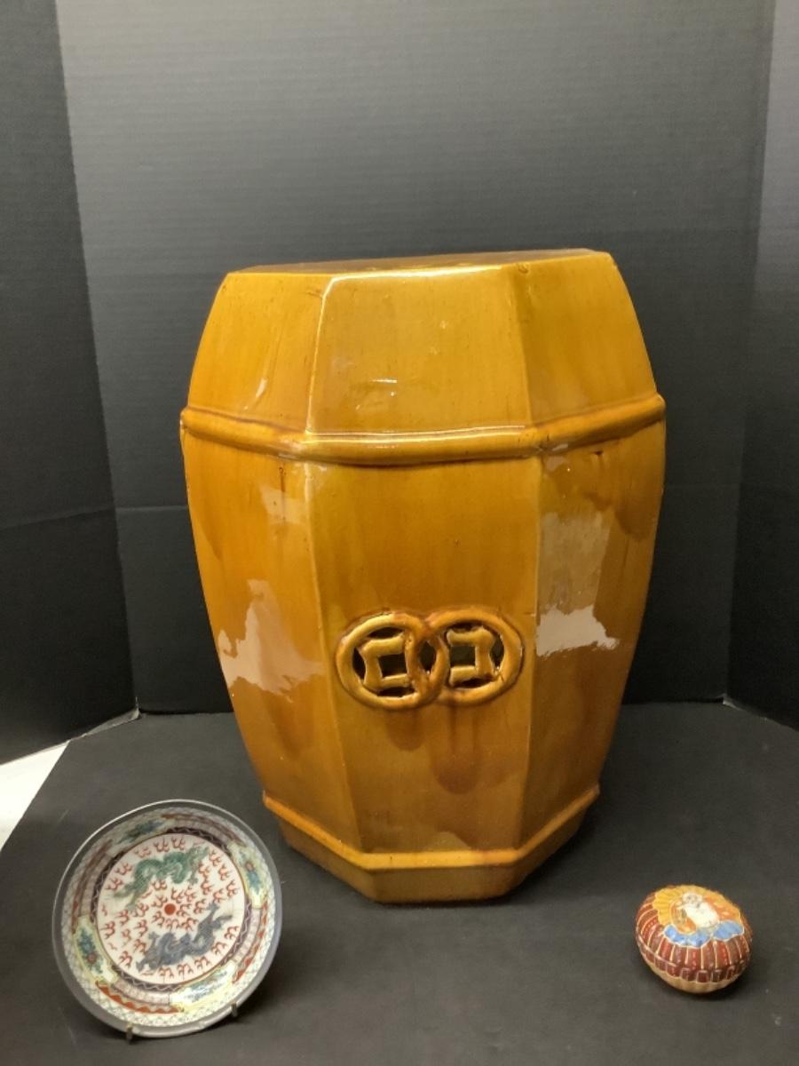 256. Asian Garden Seat, Japanese Bowl & Hand Painted Trinket Dish