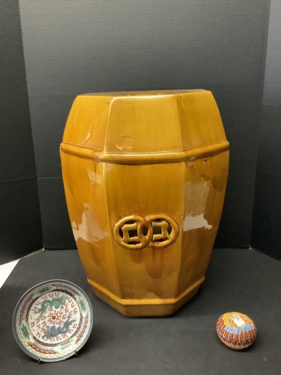 Asian Garden Seat, Japanese Bowl & Hand Painted Trinket Dish