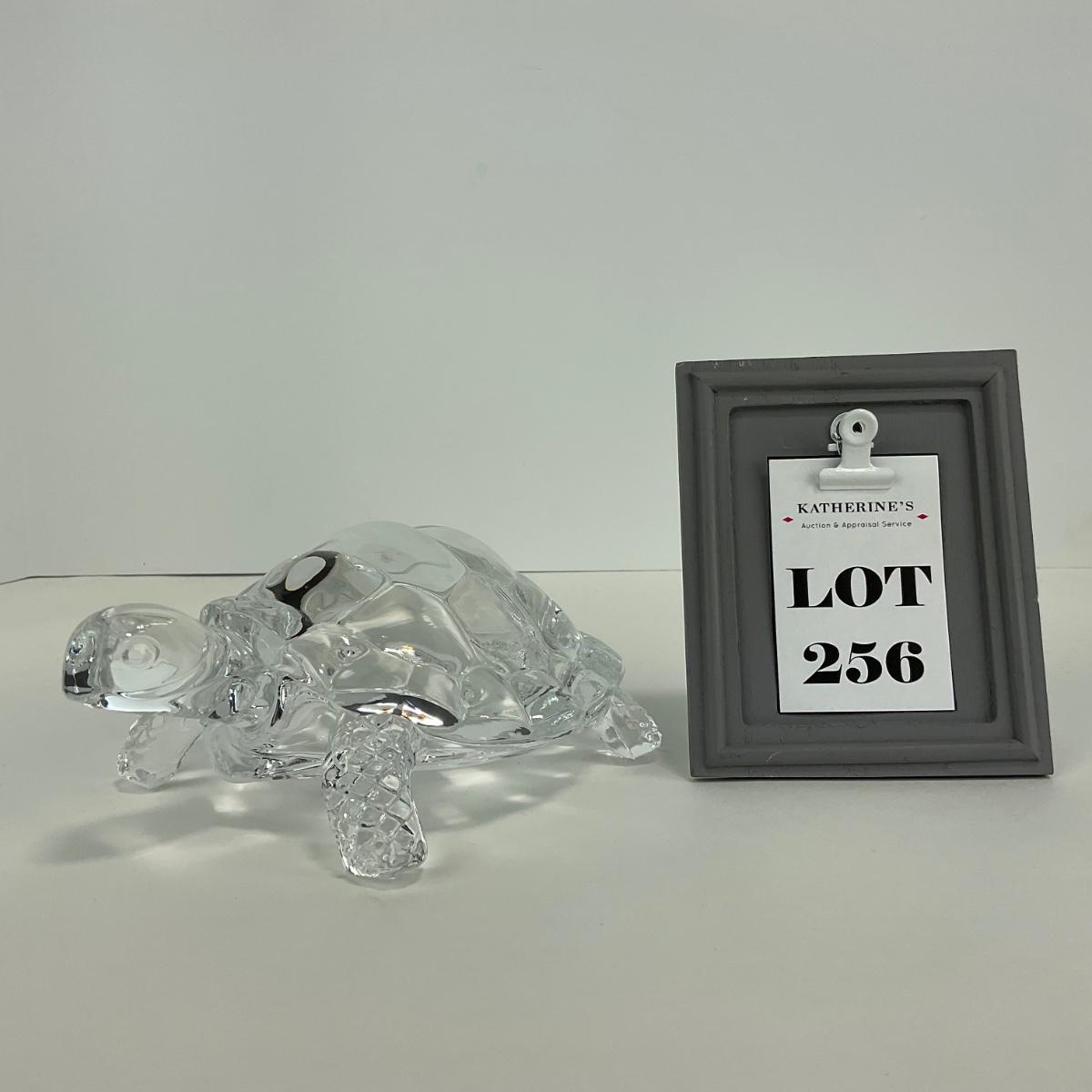 One clear glass Cristal D’ Arques Durand turtle figure. This piece has no damage, and appears to be in great shape with no visable chips, cracks, or broken pieces. Please see photos for details and condition. Any condition statement is given as a courtesy to a client, is an opinion, and should not be treated as a statement of fact. Reference to condition written, oral or within a condition report shall not be regarded as a full account of condition and may not include all defects, alterations, or restorations. Absence of a condition report does not imply a lot is flawless or lacking imperfections or damage. Katherine’s Auction & Appraisal Service shall have no responsibility for any error or omission. Returns shall not be accepted on the basis of condition. ::: Shipping is available on this lot. If you require shipping you must let us know at the close of the auction. We will coordinate with you after the item has been won. Shipping fees will include insurance up to or exceeding the value of all items being mailed. If you have any questions regarding this lot please contact the auctioneer either via this website, by direct email or by phone. PICK UP TIMES and other important information can be found in the TERMS and DESCRIPTION of the auction. Please take a look for pertinent information. Thanks!