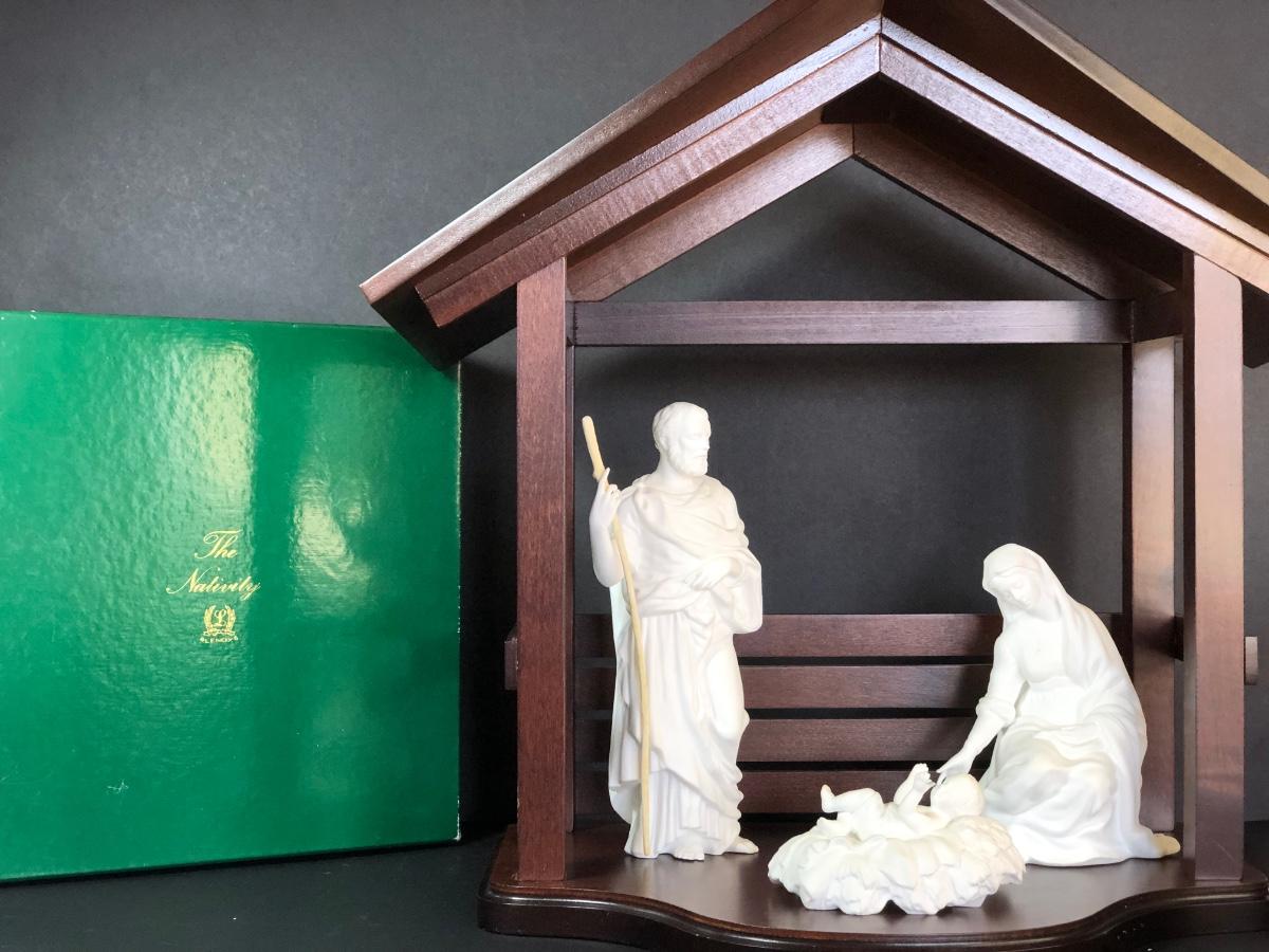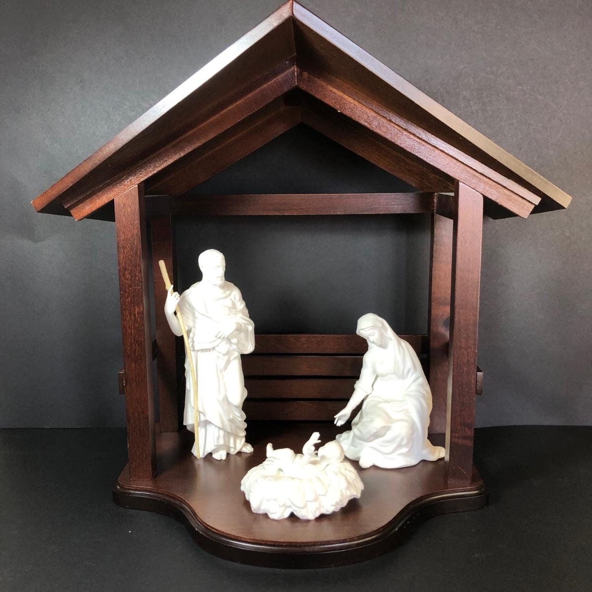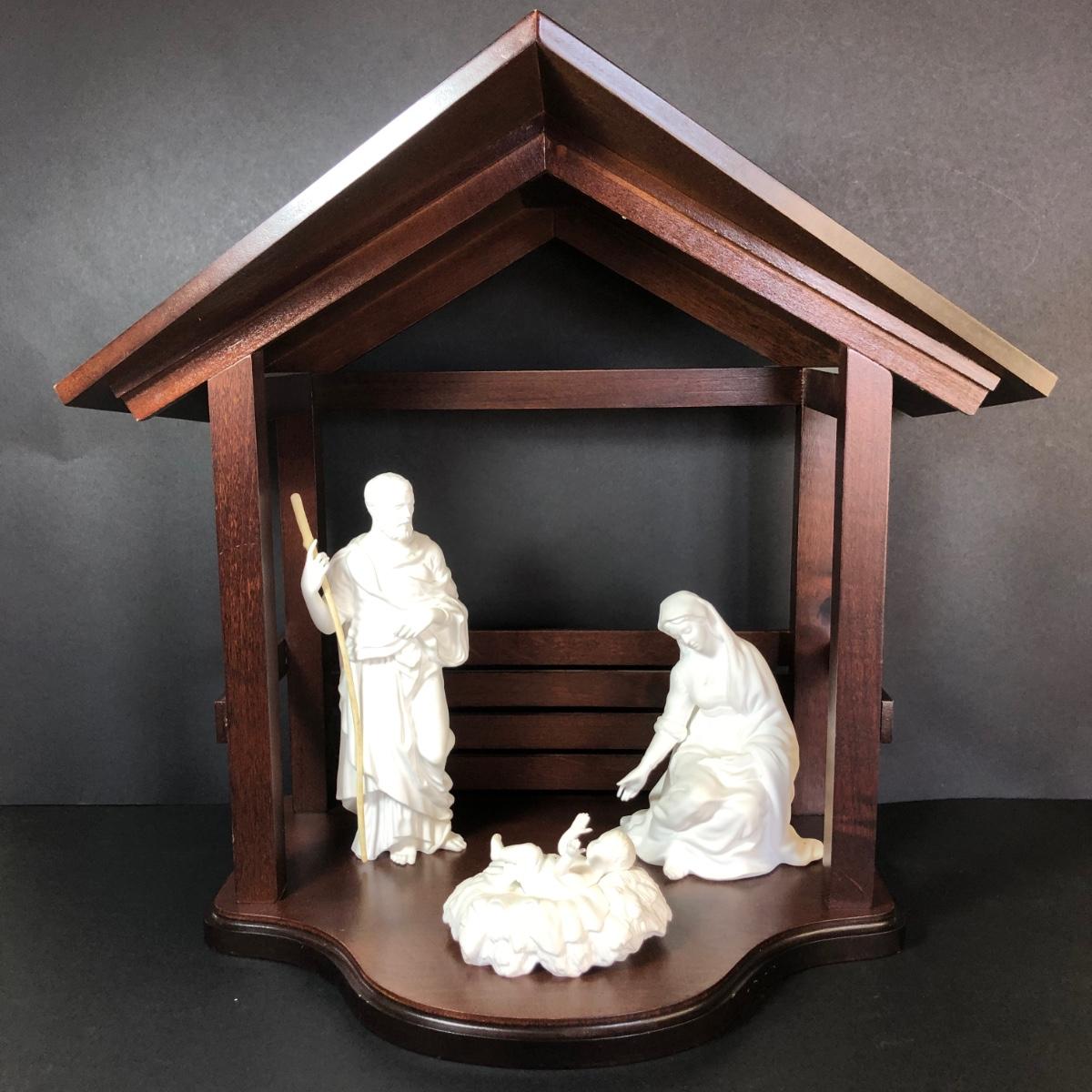 256M: 1990 Lenox Nativity - The Holy Family & Wooden Barn