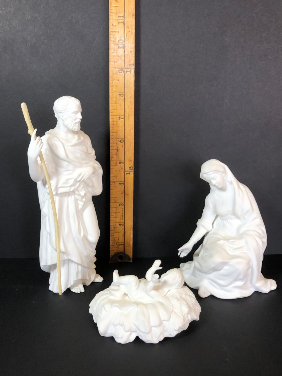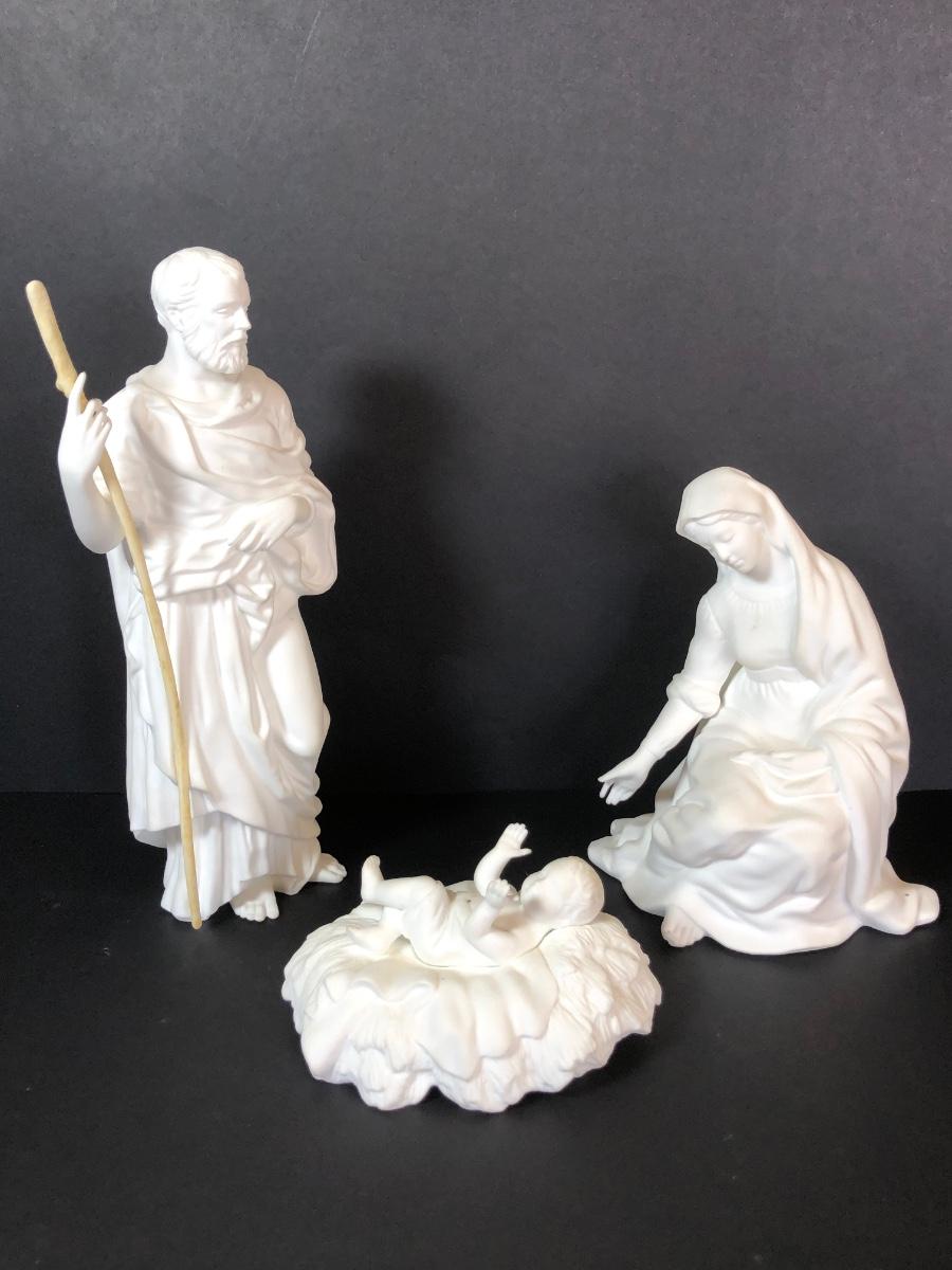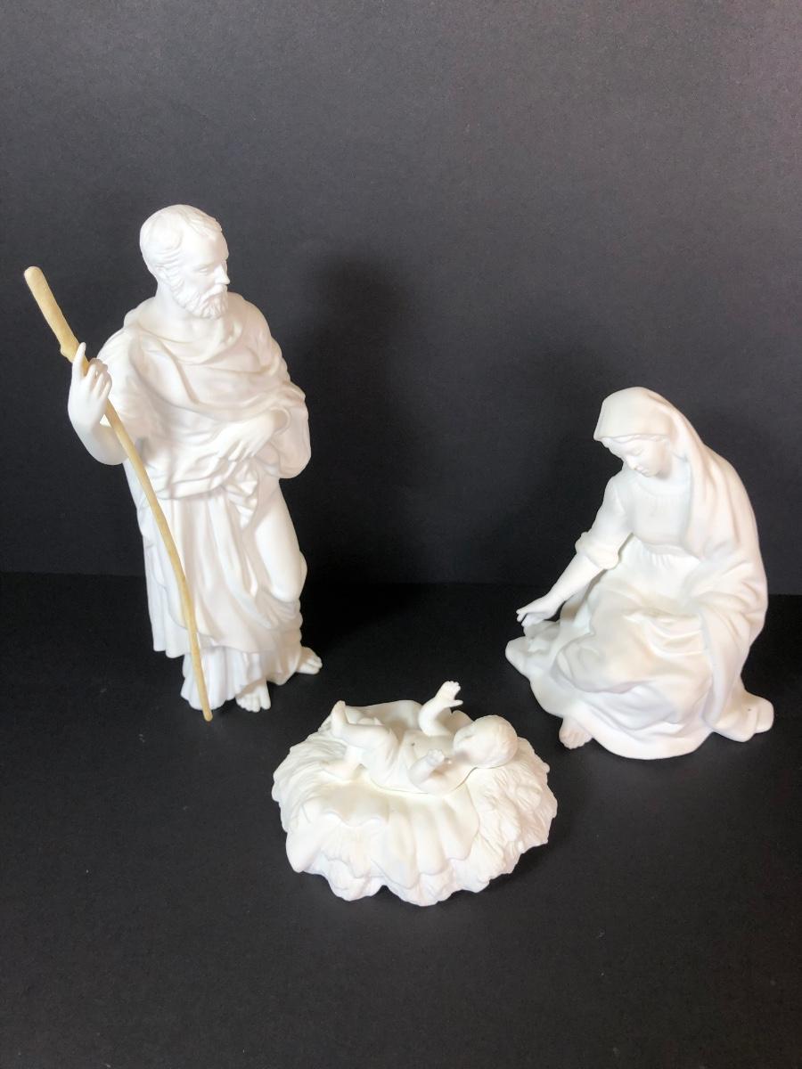 256M: 1990 Lenox Nativity - The Holy Family & Wooden Barn