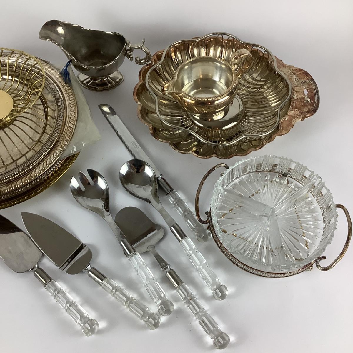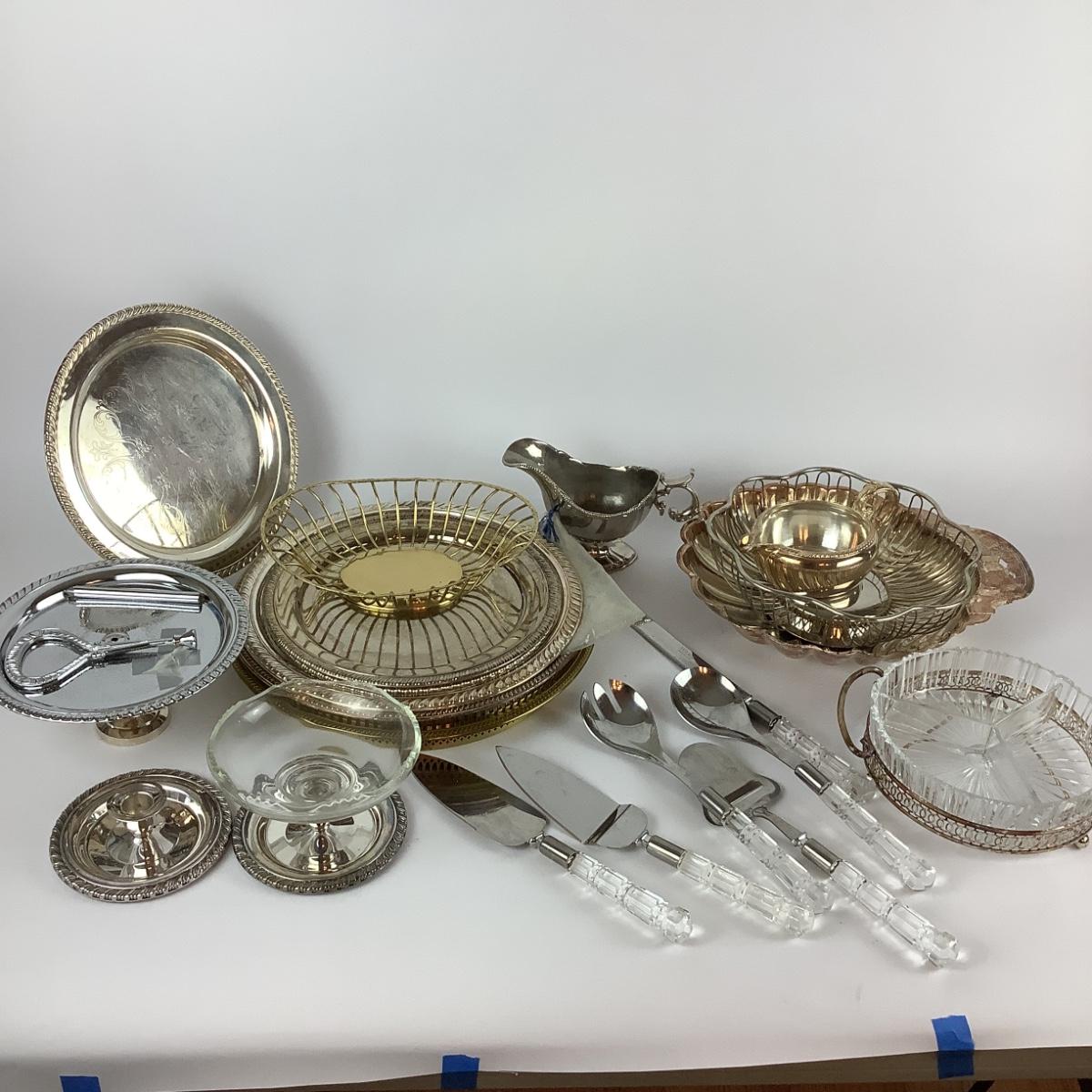 Serving utensils, bowls, trays, gravy , glass in sert 3 sectional dish