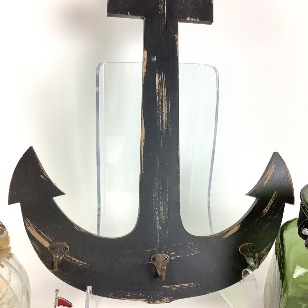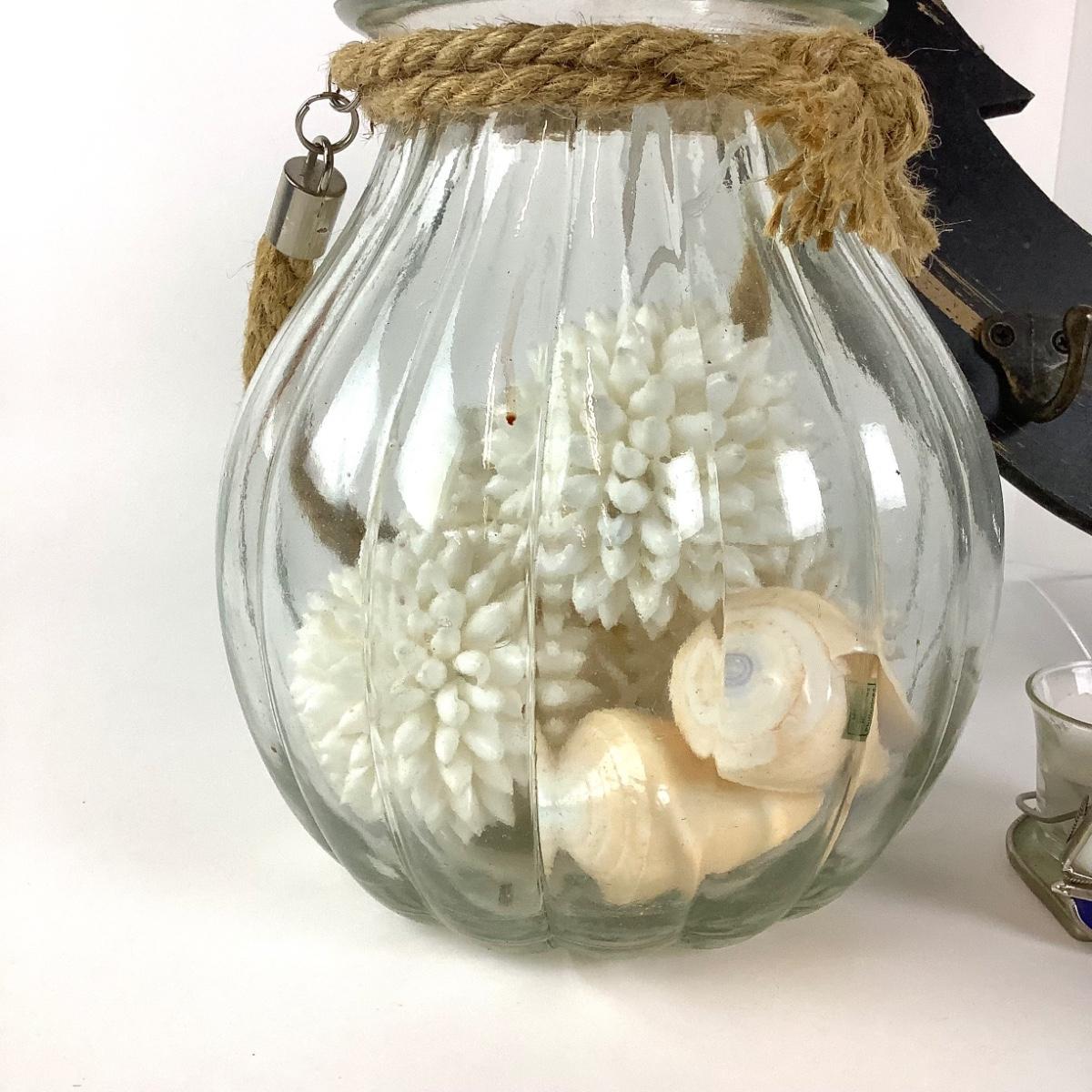 258 Large Anchor Wall Hook with Two Rope Handled Glass Lanterns
