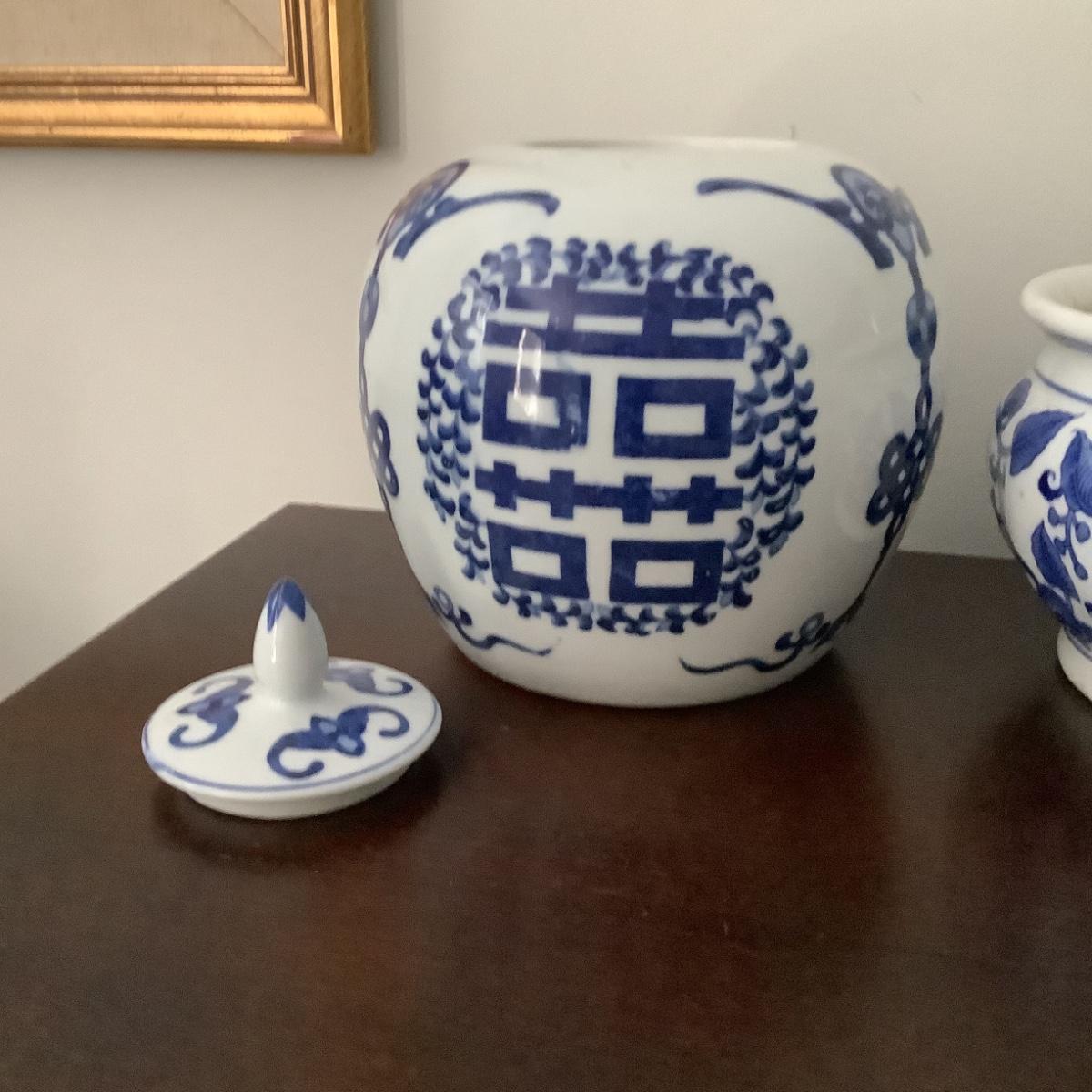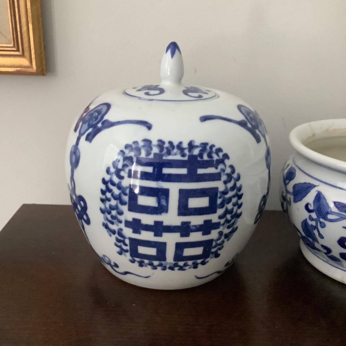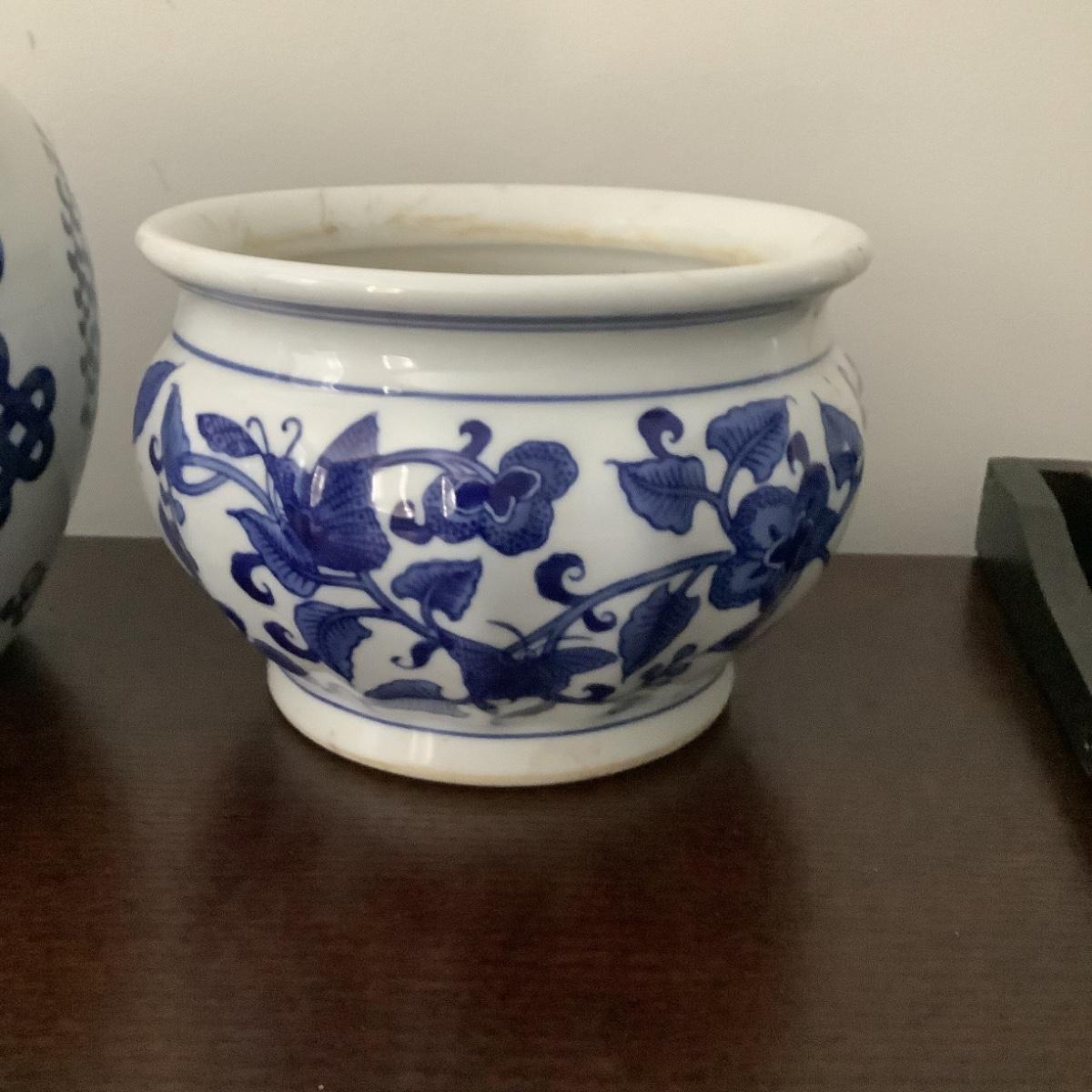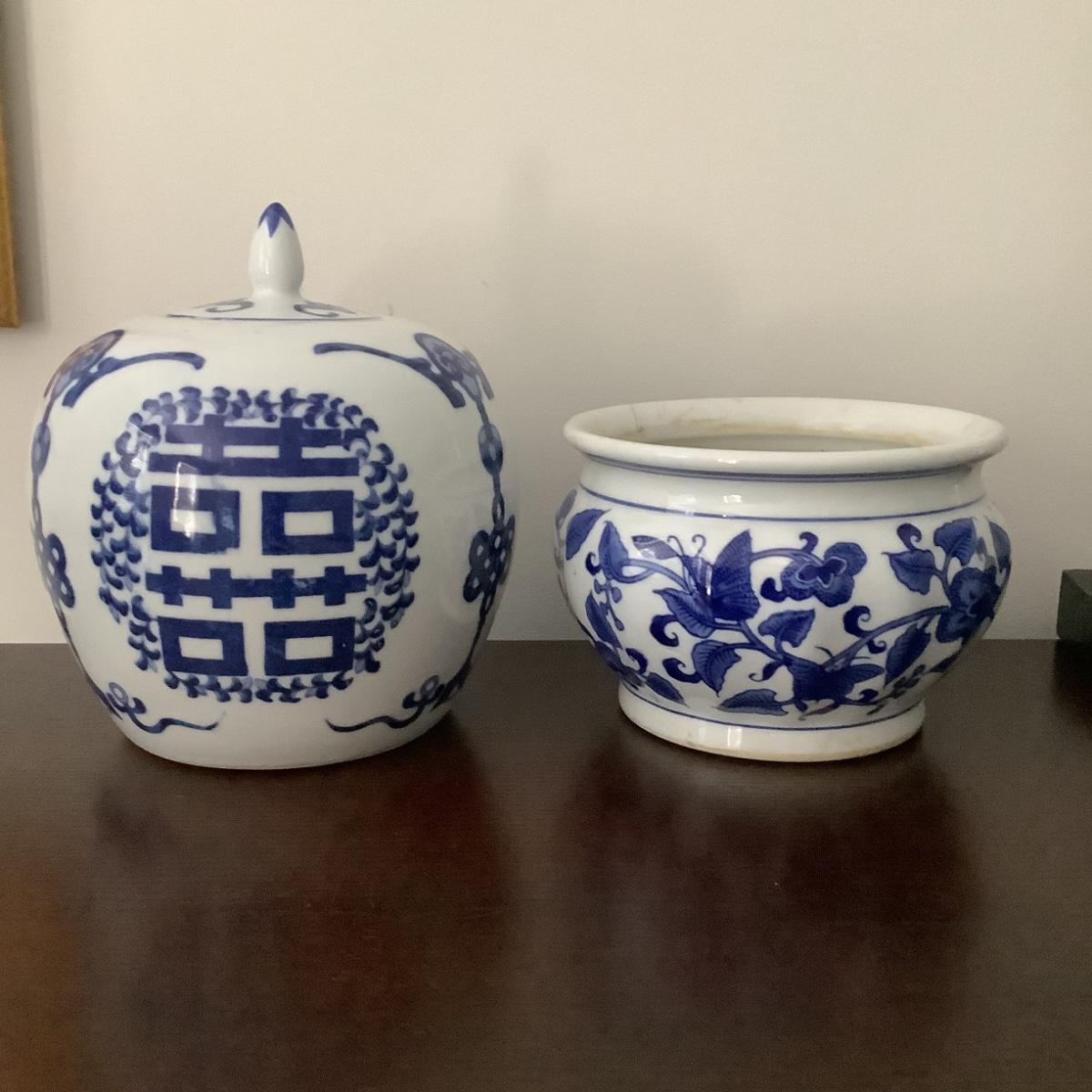 258 Lot of Blue and White Pottery Ginger Jar and Planter