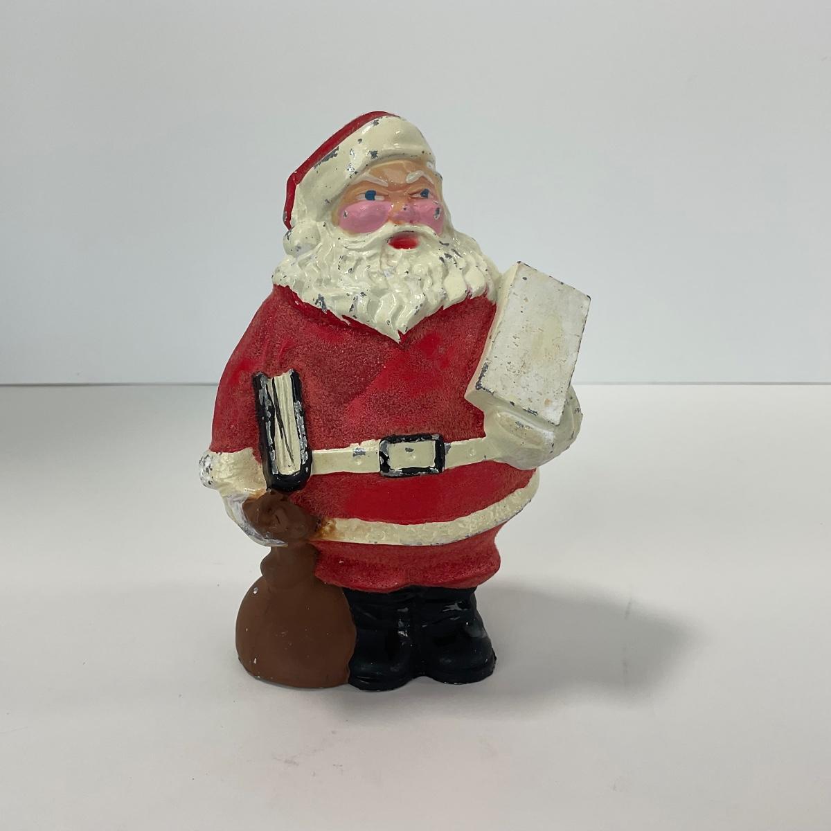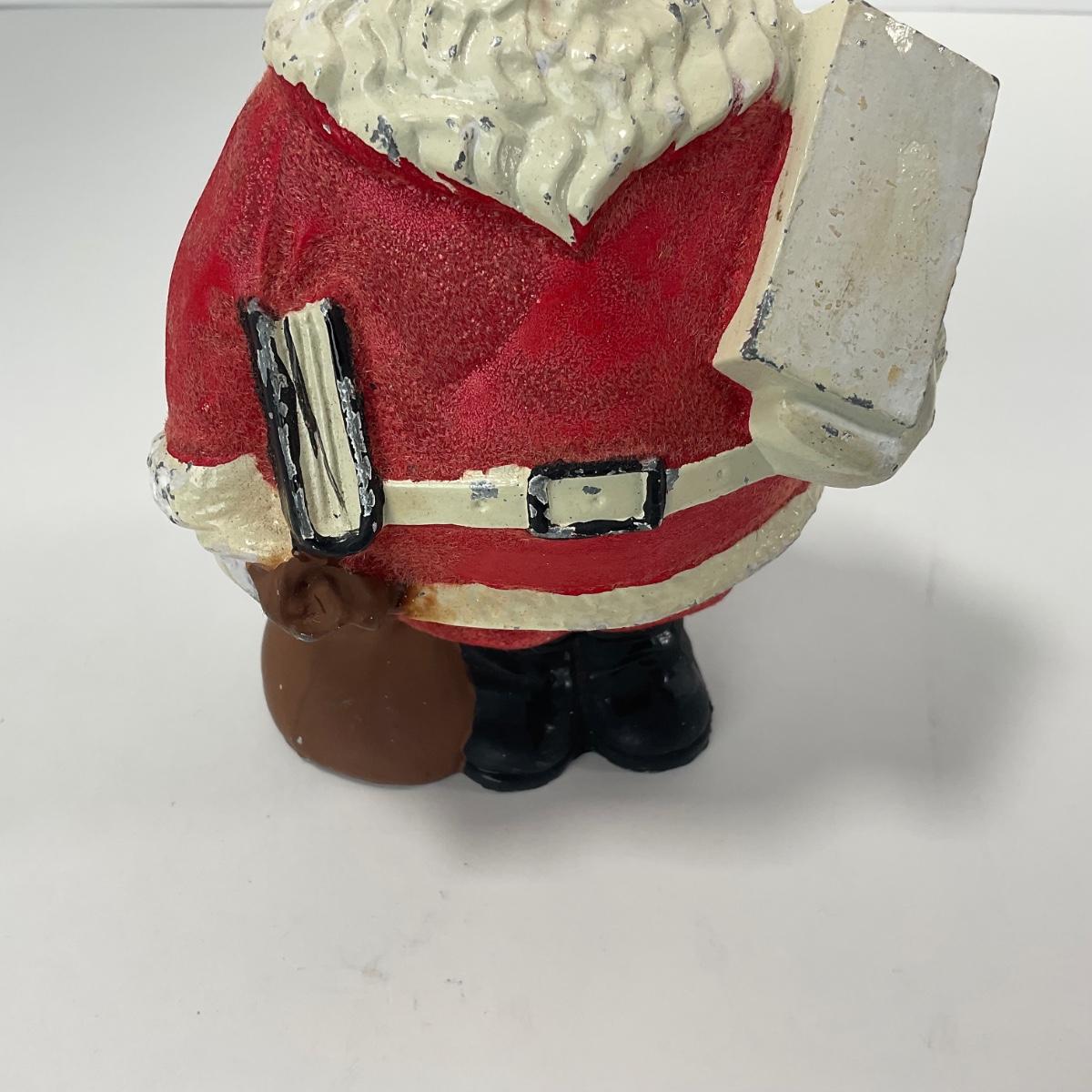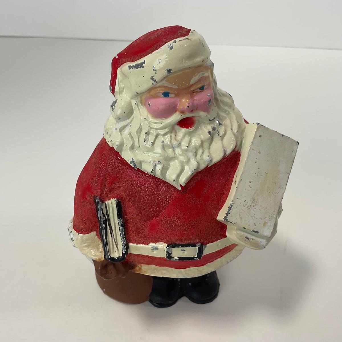 One vintage metal Santa bank. In worn chip paint condition. Please see photos for details and condition. ::: Shipping is available on this lot. If you require shipping you must let us know at the close of the auction. We will coordinate with you after the item has been won. Shipping fees will include insurance up to or exceeding the value of all items being mailed. If you have any questions regarding this lot please contact the auctioneer either via this website, by direct email or by phone. PICK UP TIMES and other important information can be found in the TERMS and DESCRIPTION of the auction. Please take a look for pertinent information. Thanks!