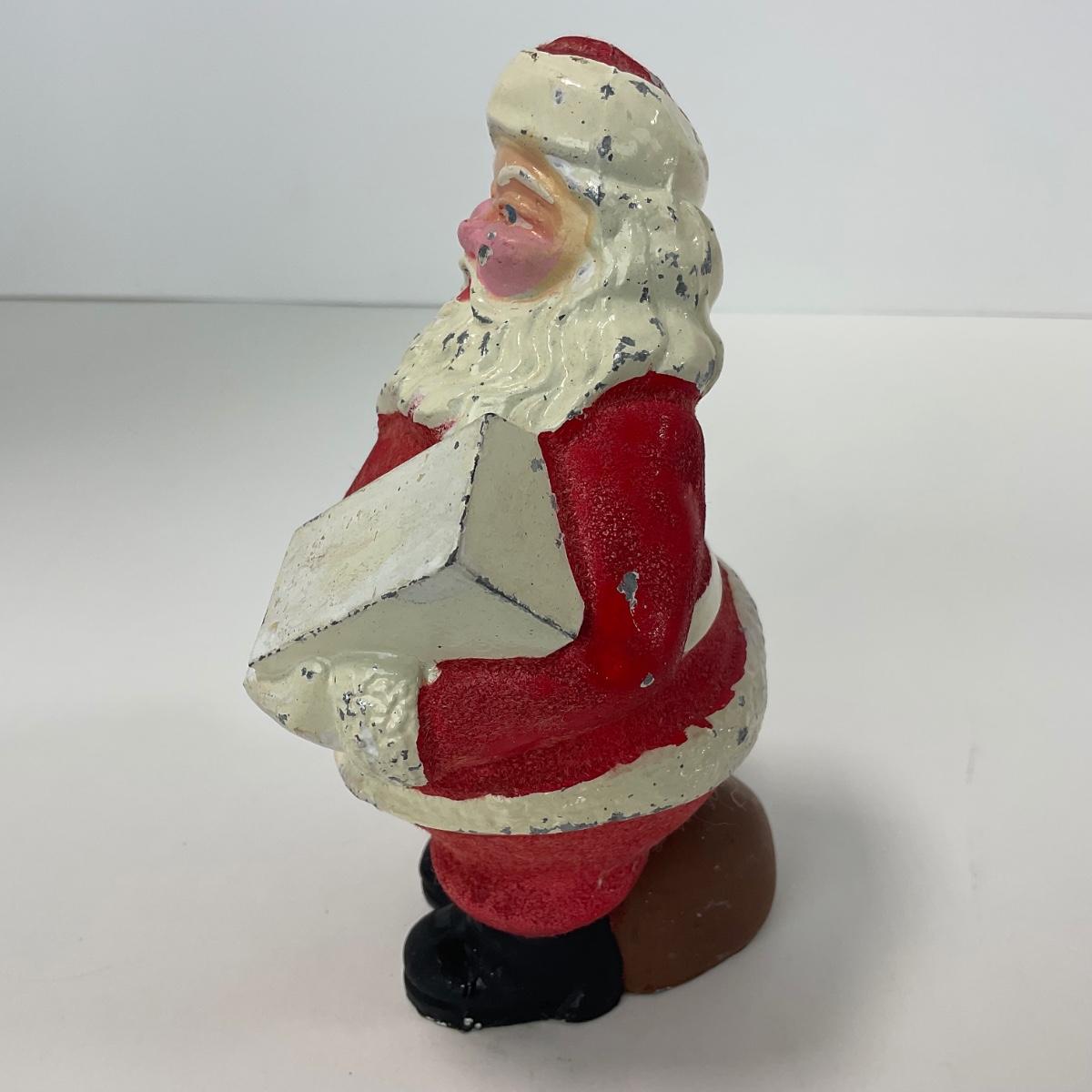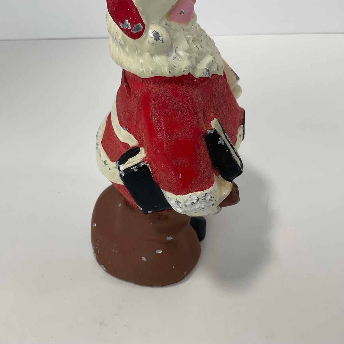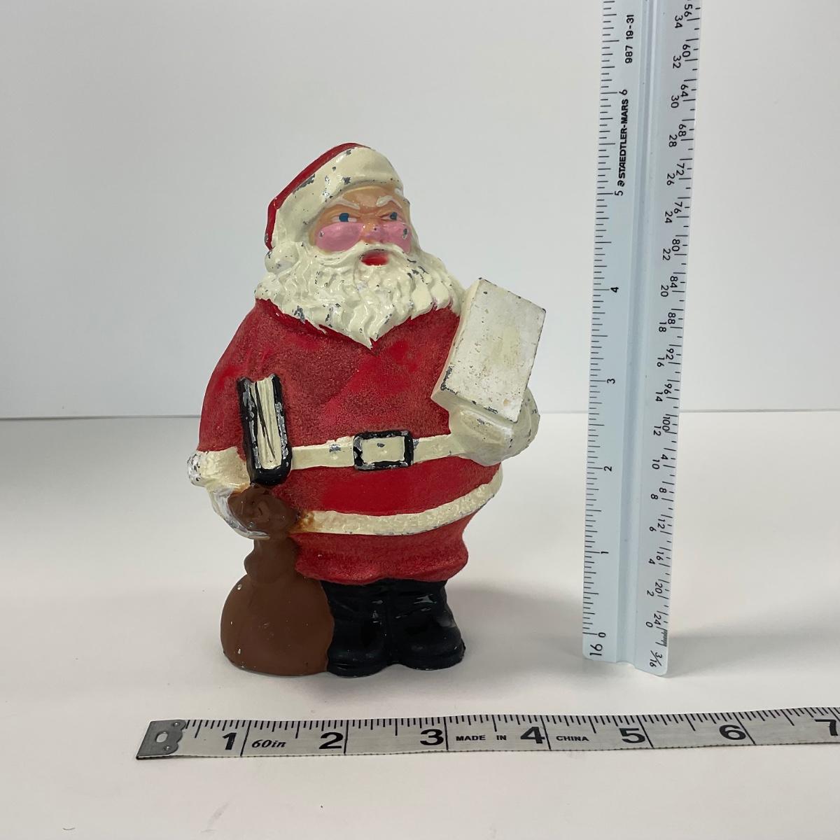 One vintage metal Santa bank. In worn chip paint condition. Please see photos for details and condition. ::: Shipping is available on this lot. If you require shipping you must let us know at the close of the auction. We will coordinate with you after the item has been won. Shipping fees will include insurance up to or exceeding the value of all items being mailed. If you have any questions regarding this lot please contact the auctioneer either via this website, by direct email or by phone. PICK UP TIMES and other important information can be found in the TERMS and DESCRIPTION of the auction. Please take a look for pertinent information. Thanks!