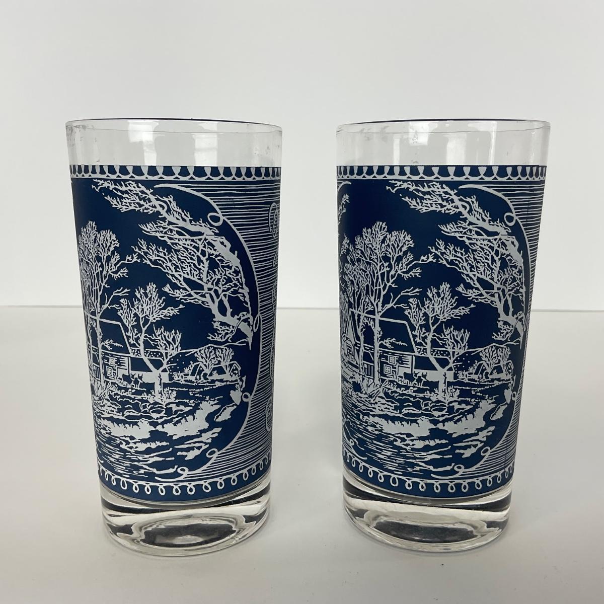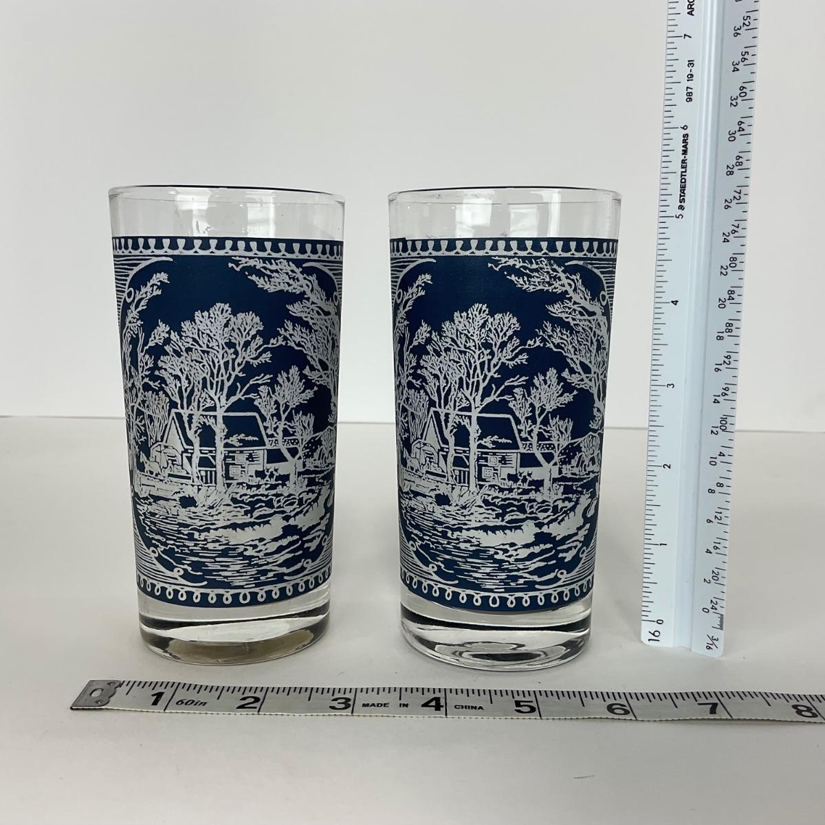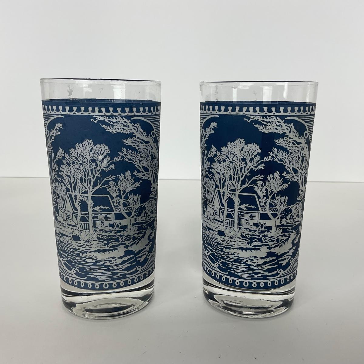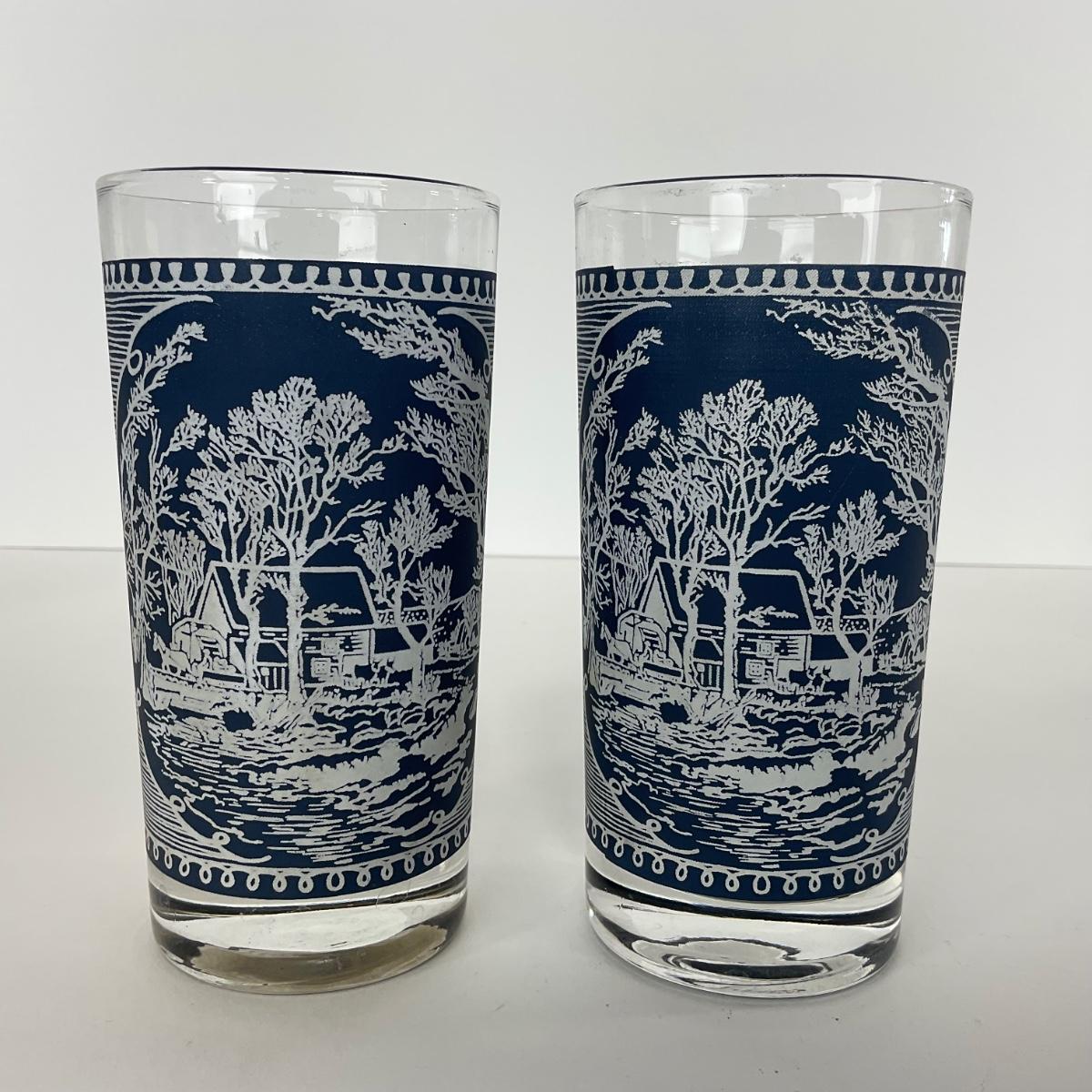 -259- GLASSWARE | Currier & Ives Old Mill Dark Blue | Drinking Glasses